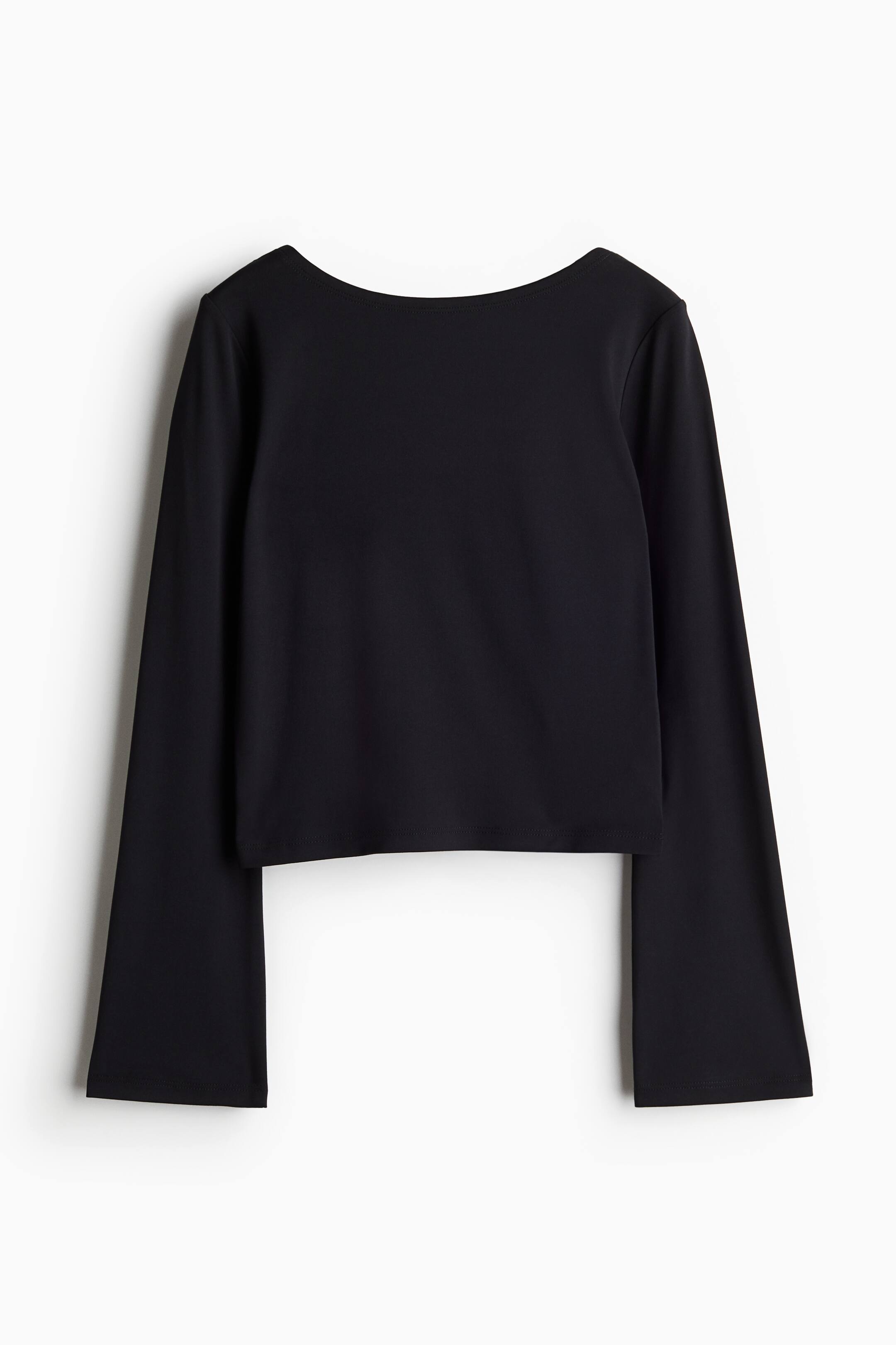 Sports top in functional fabric made with SoftMove™, which provides the ultimate in softness and comfort plus contouring support, and DryMove™, which helps pull moisture away from your skin. Slim fit with a round neckline and long trumpet sleeves.