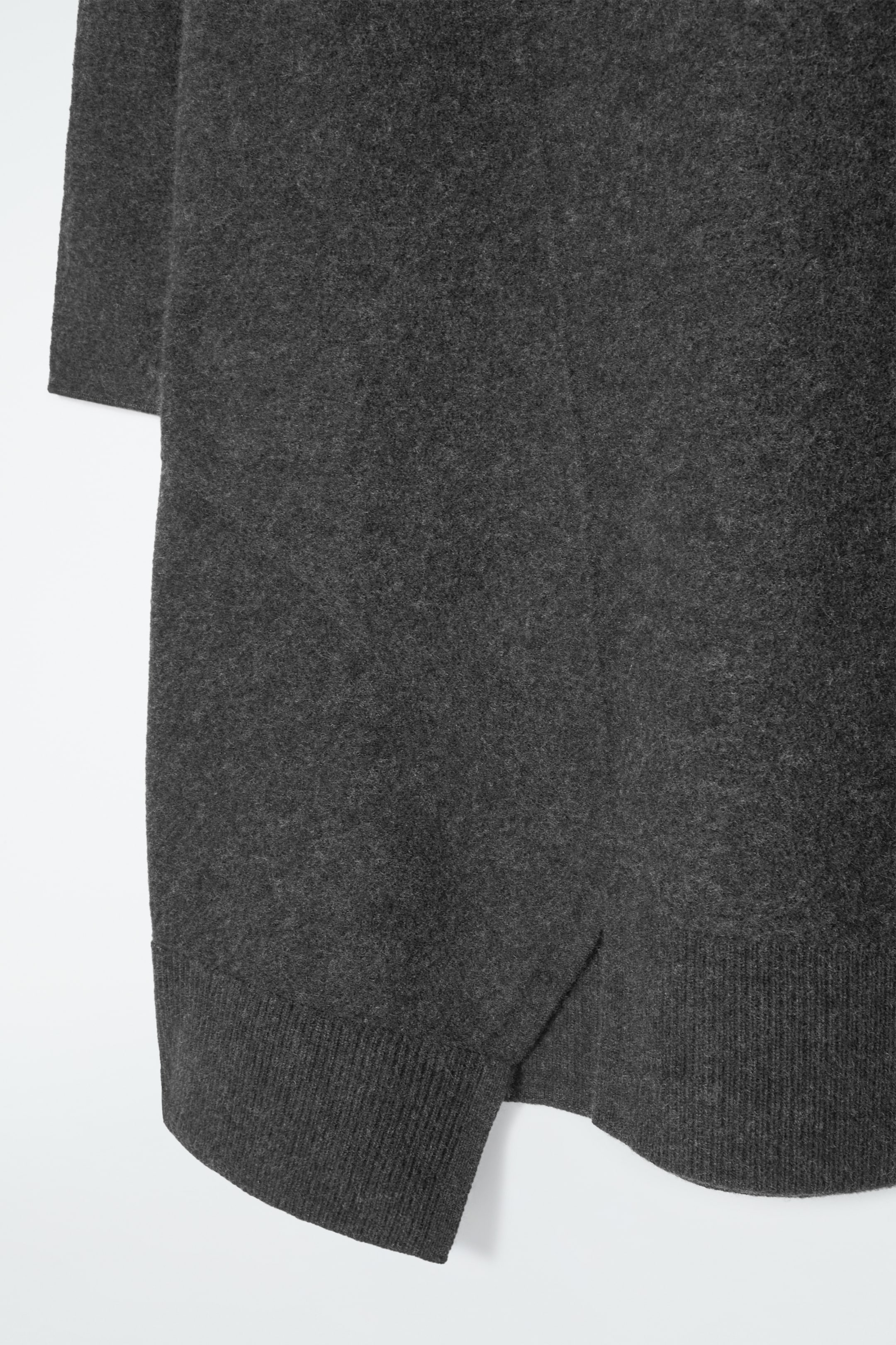 This contemporary dress taps into this season's deconstructed trend. Offered in an enduring charcoal hue, it's knitted from premium merino wool that has been boiled for a softer, more structured hand feel. The high rollneck has a centre-back slit so it's less restrictive, while the overlapped seams and asymmetric midi hem channel a modern view. Relaxed fit This product contains Responsible Wool Standard TE-00047206 (RWS) wool fibre from farms certified to animal welfare and land-management requirements Shell: 100% Merino wool. Excluding trims / Dry clean Back length of size S is 108cm / Model wears a size S
