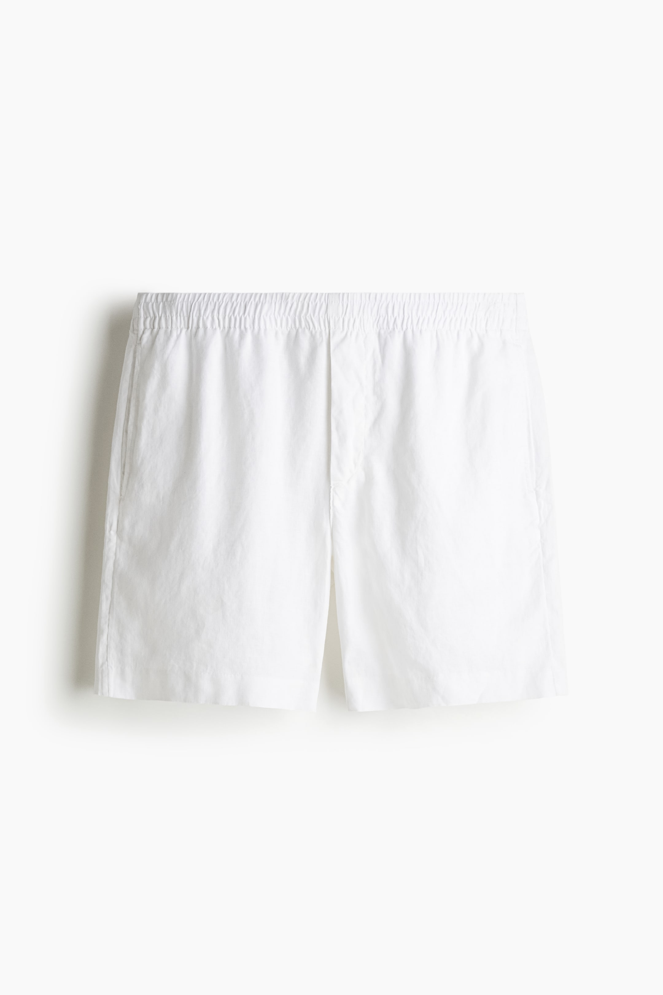 Shorts in airy linen with covered elastication and a concealed drawstring at the waist, a fake fly, side pockets and a welt back pocket. Regular fit for comfortable wear and a classic silhouette. Fabric made from linen is breathable, beautiful both ironed and wrinkled, and softens over time.