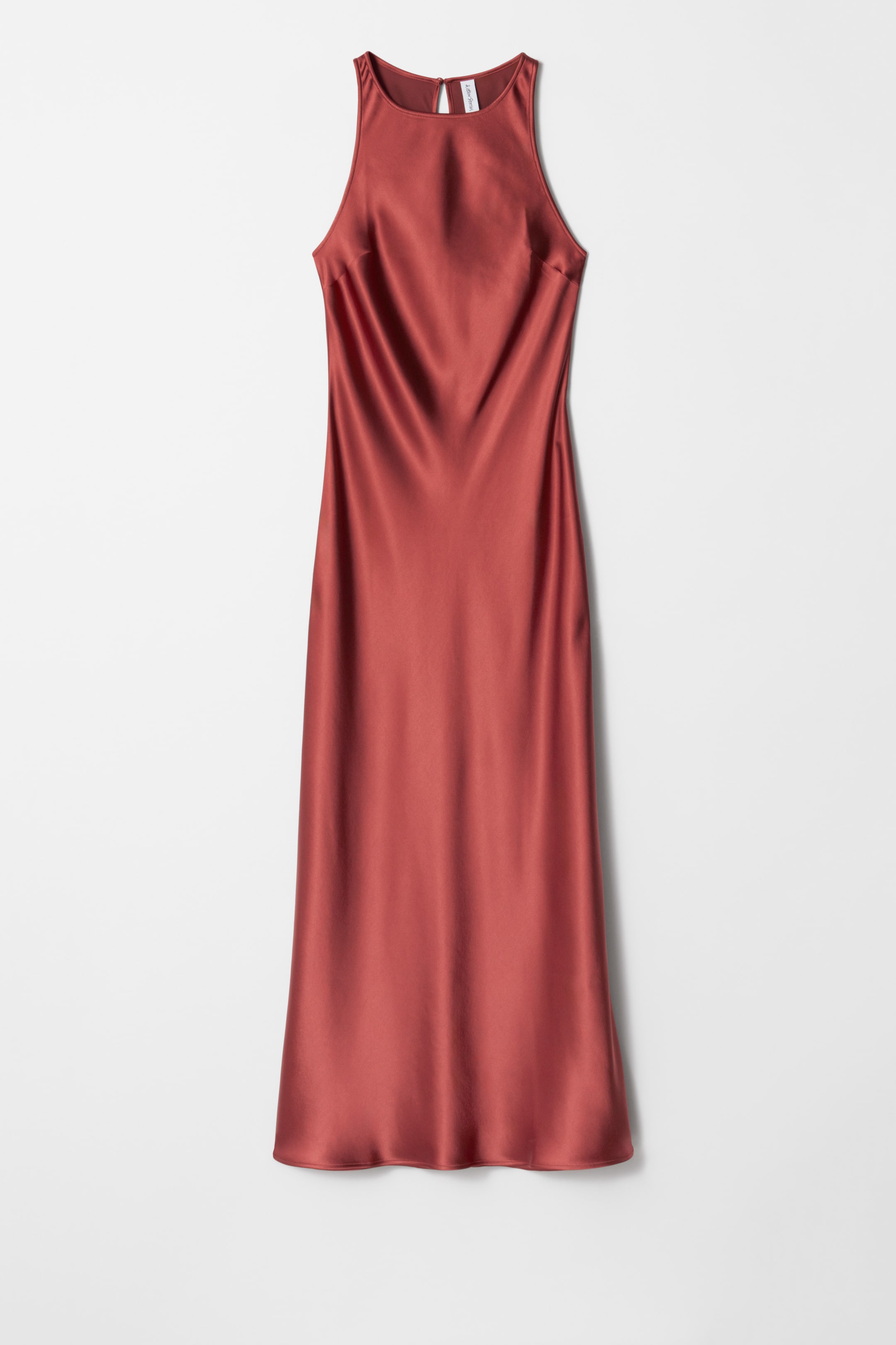 Sleeveless satin dress featuring a glossy, satin finish and a round neckline. Finished with a keyhole closure at the neck. Length of dress:122.5cm / 48.2" (EU 36 / UK 8 / US 4)