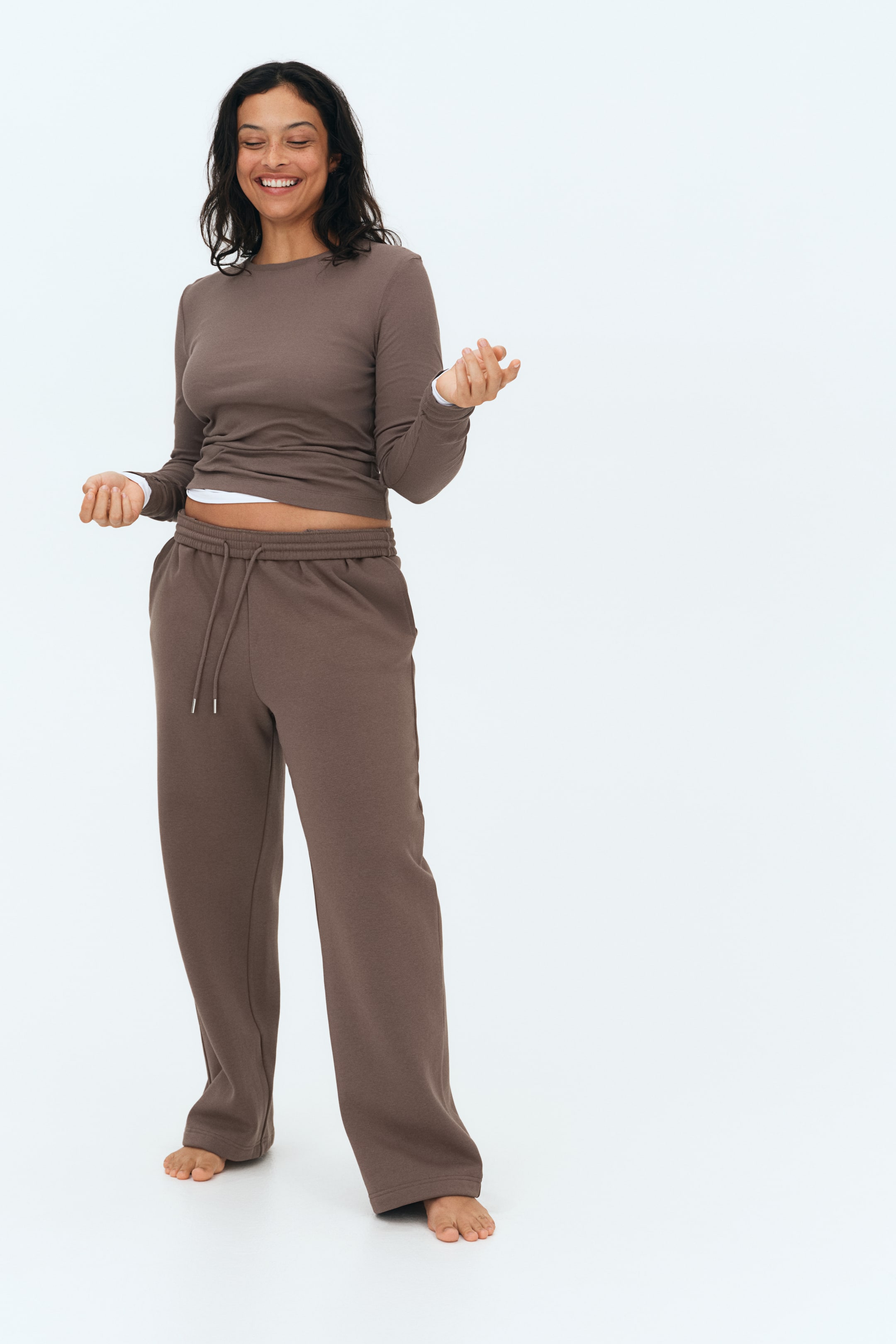 Fitted top in ribbed cotton jersey with a round neckline and extra-long sleeves.