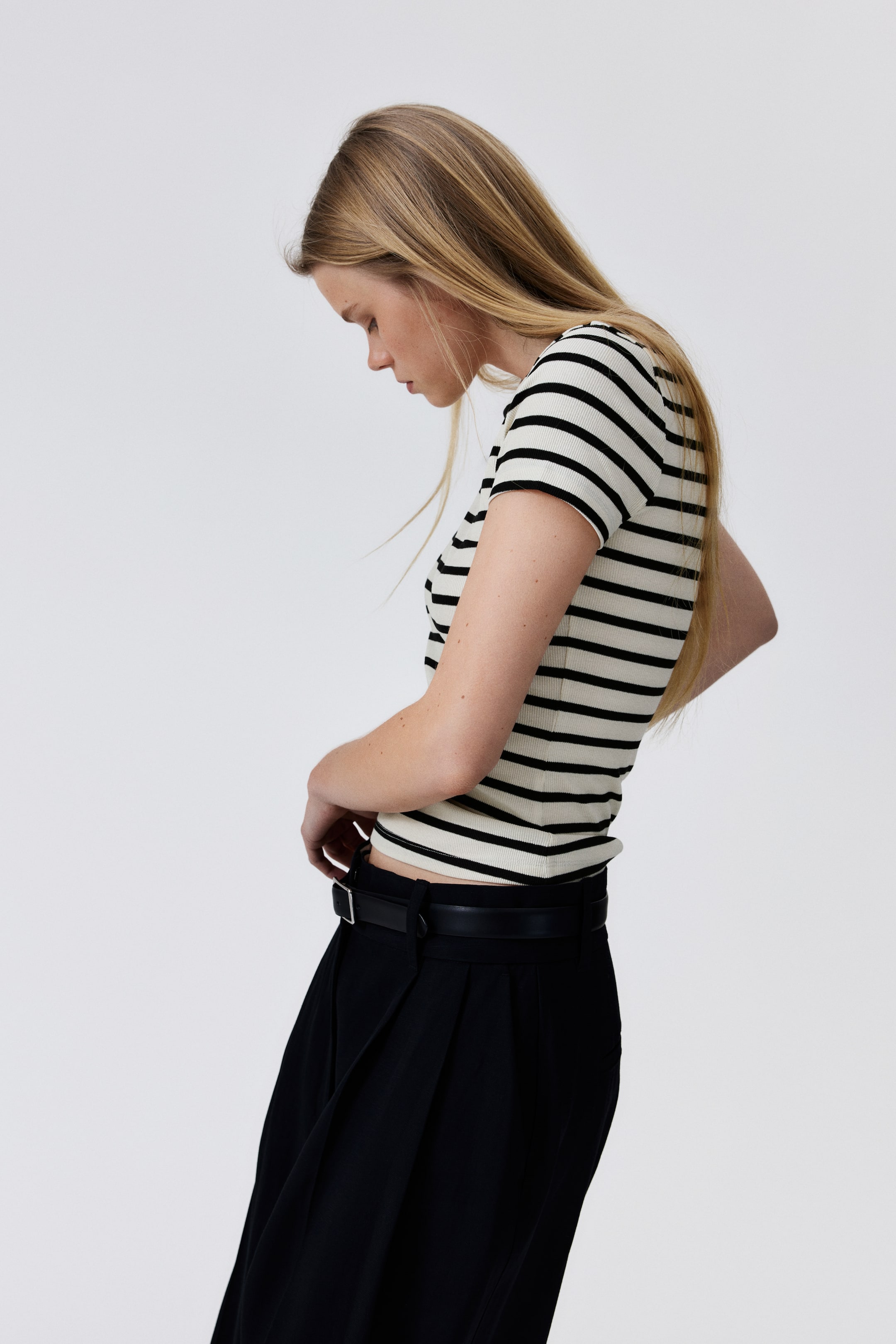 Fitted T-shirt in ribbed jersey with a crew neck and a straight-cut hem.