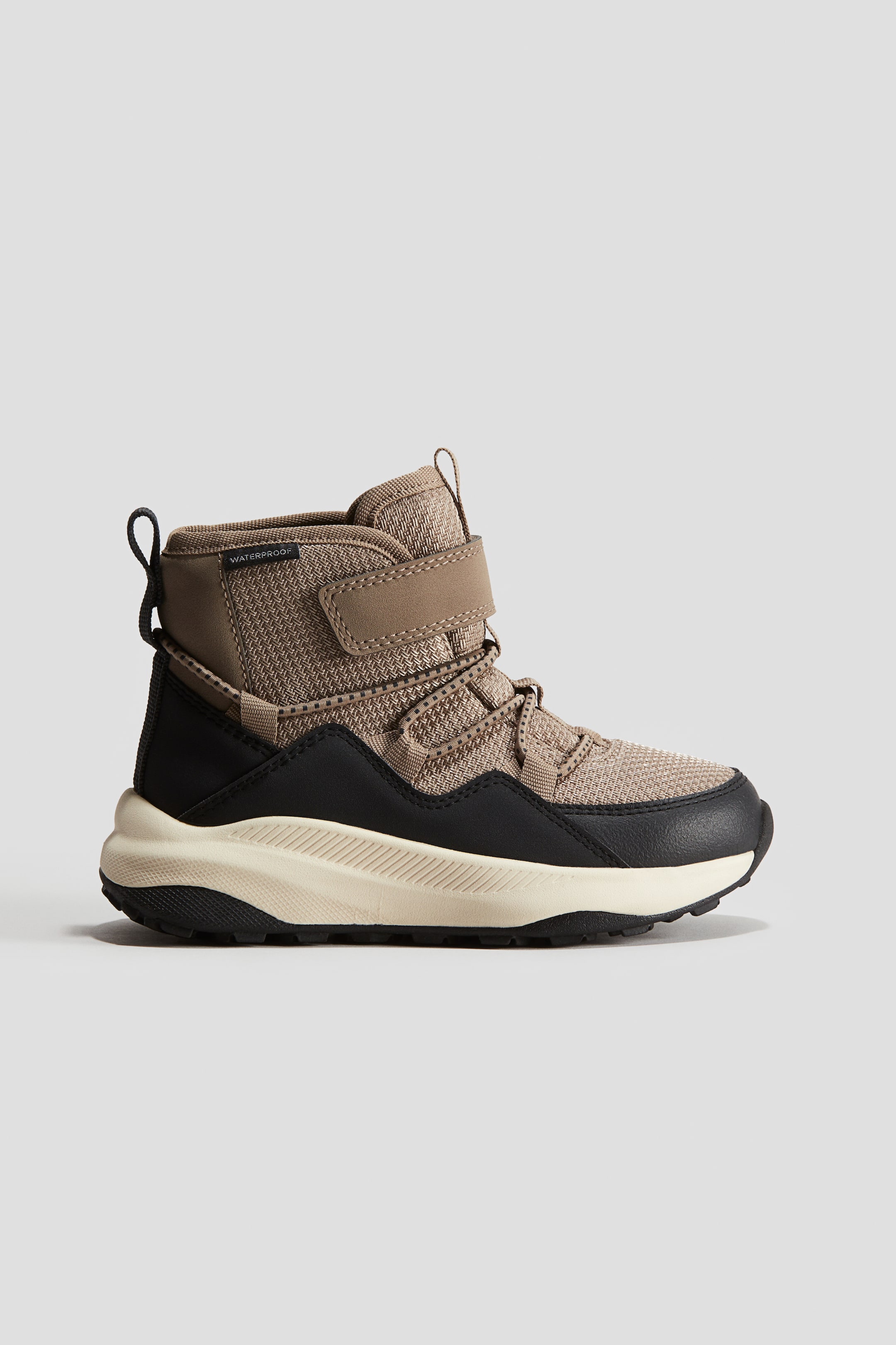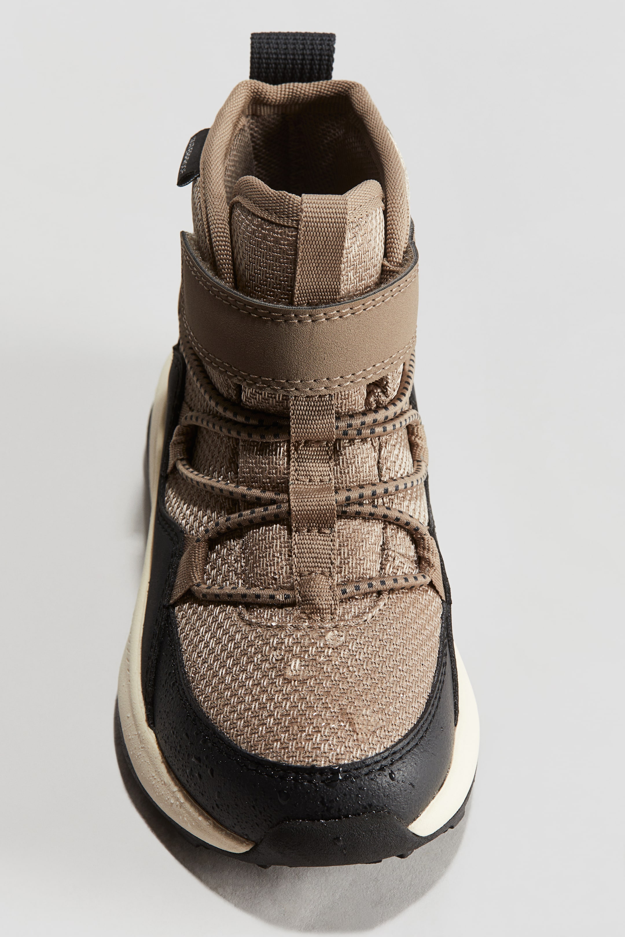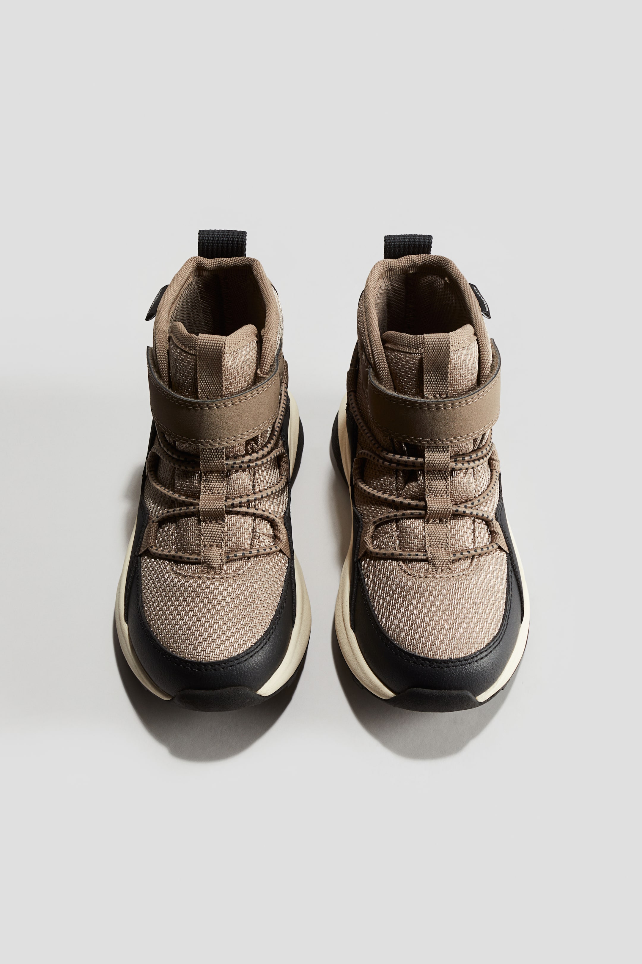 Hi-top trainers with a waterproof membrane to keep the feet dry. Elasticated lacing and a tab with hook and loop fastening at the top. Piqué linings and insoles in Cellfit™ technical foam for extra comfort. Chunky soles with a good grip. Height of soles 3.5 cm.