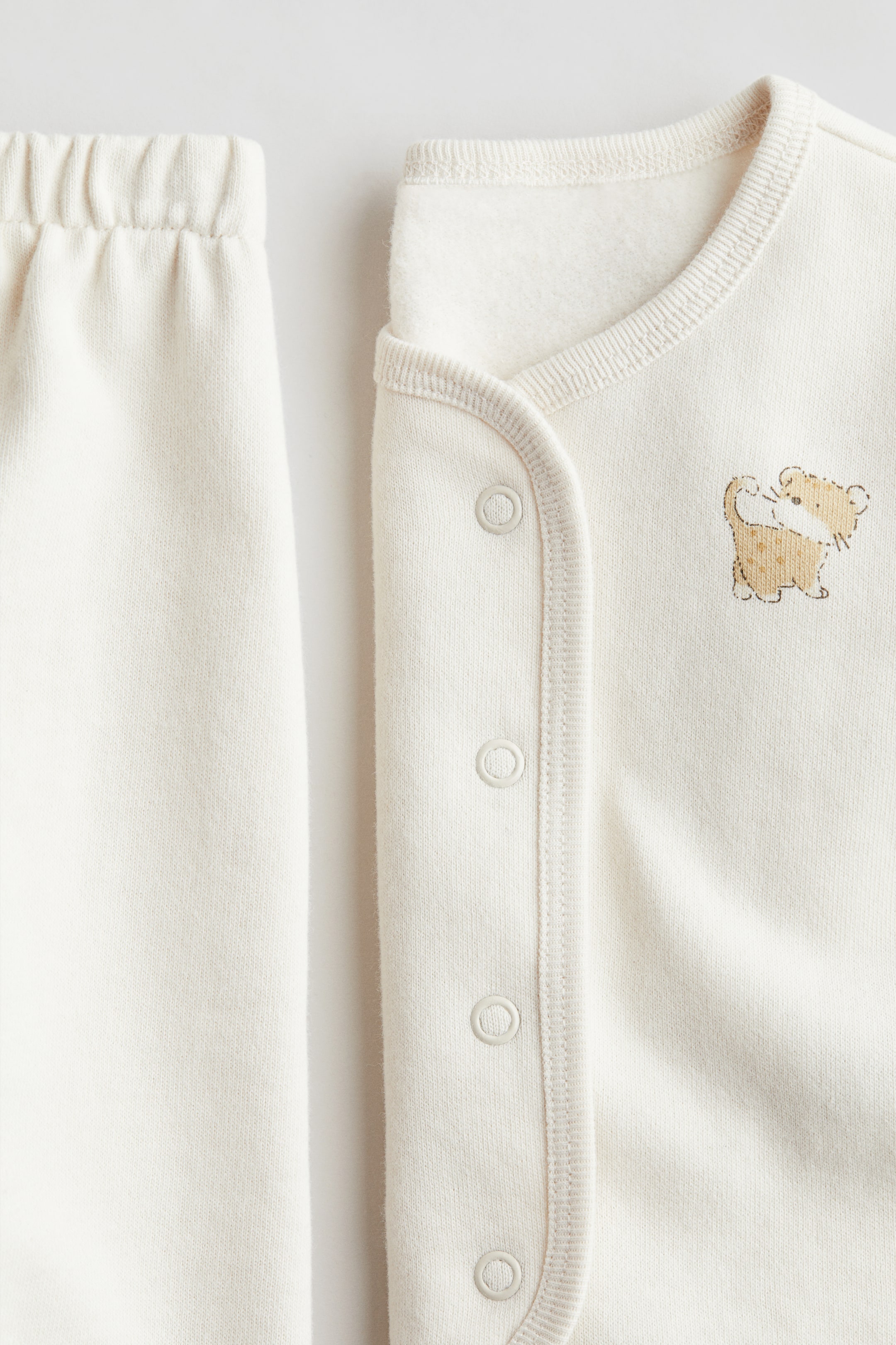 Set with a cardigan and pair of joggers in cotton jersey with a soft brushed inside. Long-sleeved cardigan with a round neckline, press-studs down the front and a small print motif on the front. Joggers with covered elastication at the waist and hems.
