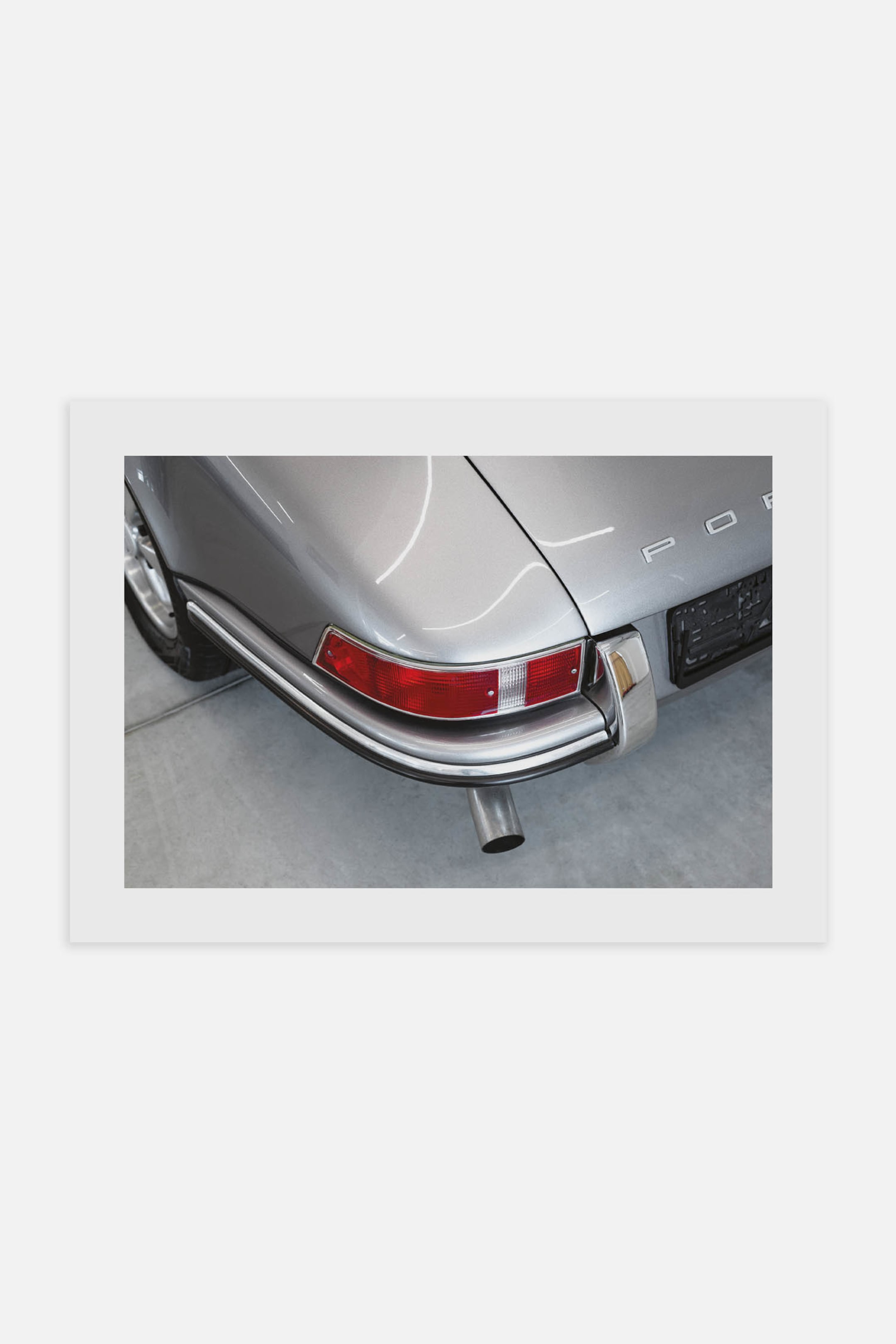 A close-up photograph of Porsche’s rear light. The motif is framed with a built-in white passepartout.