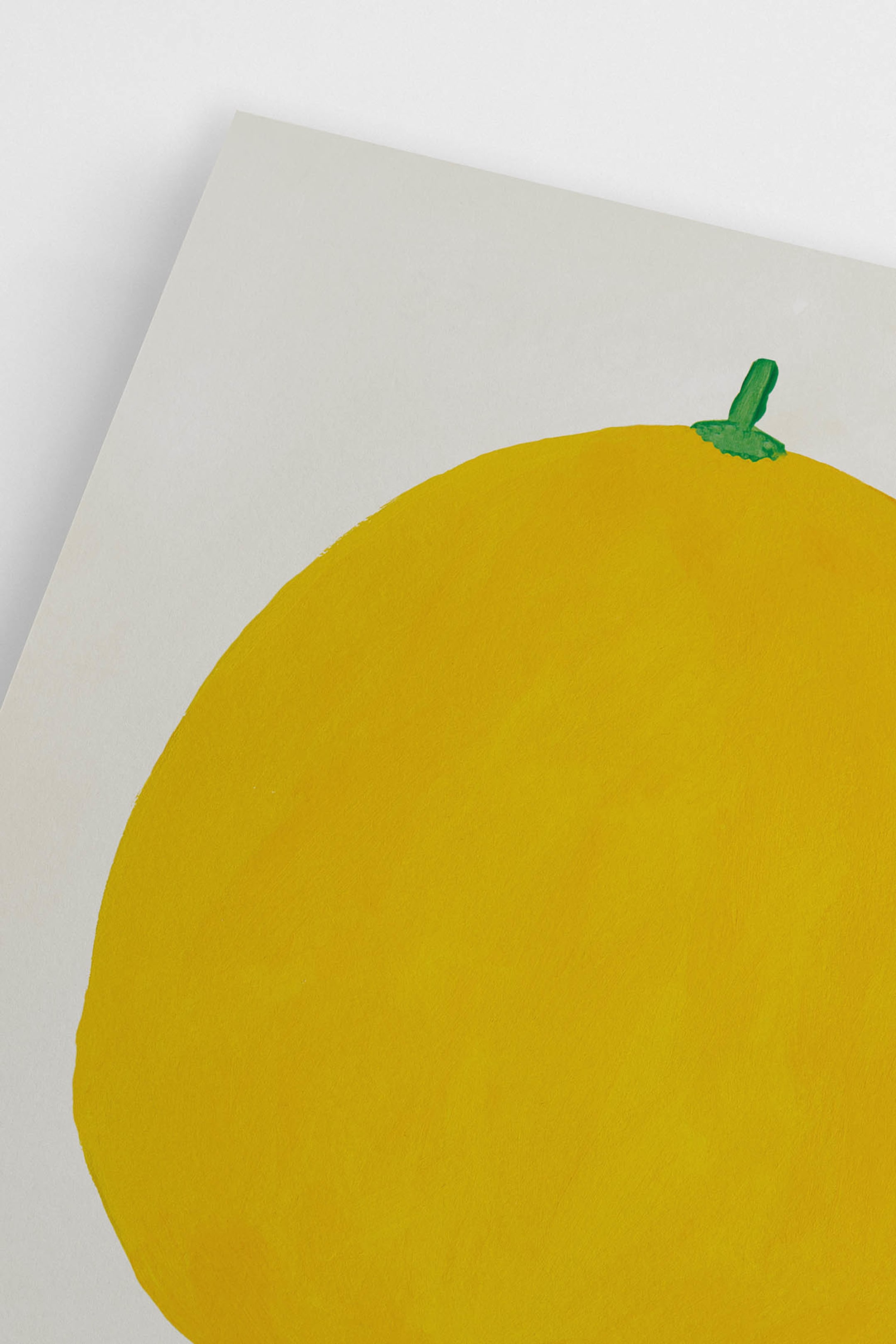 A hand-painted motif depicting a yellow lemon against a beige background. Its name is written below in green. The motif is part of the "Atelier No. 03" collection created by our in-house designers for Postery Atelier.