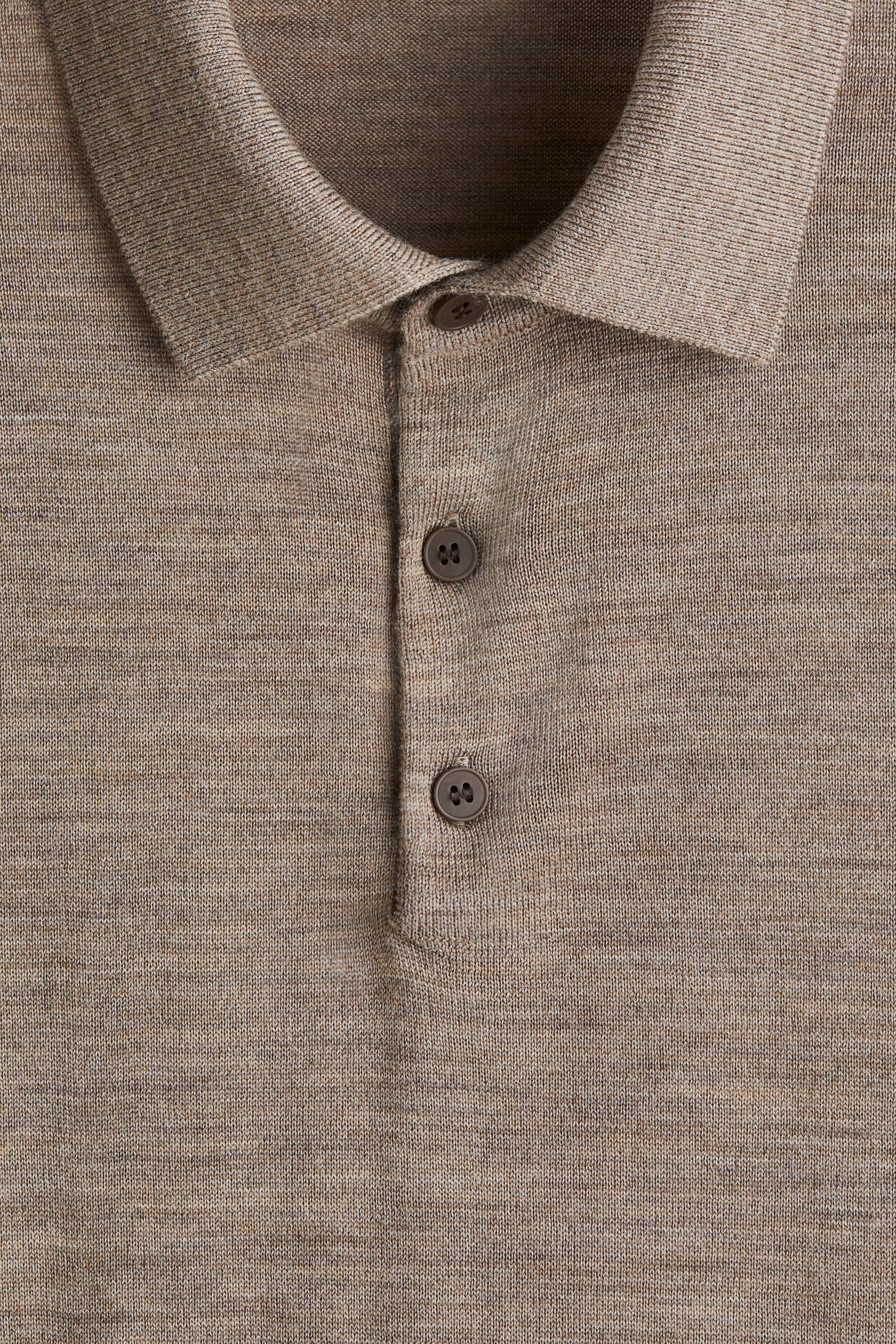 Polo shirt in soft merino wool knit, styled with a collar, button placket and long sleeves. Detailed with fine ribbing at the cuffs and hem. Regular fit for comfortable wear and a classic silhouette.