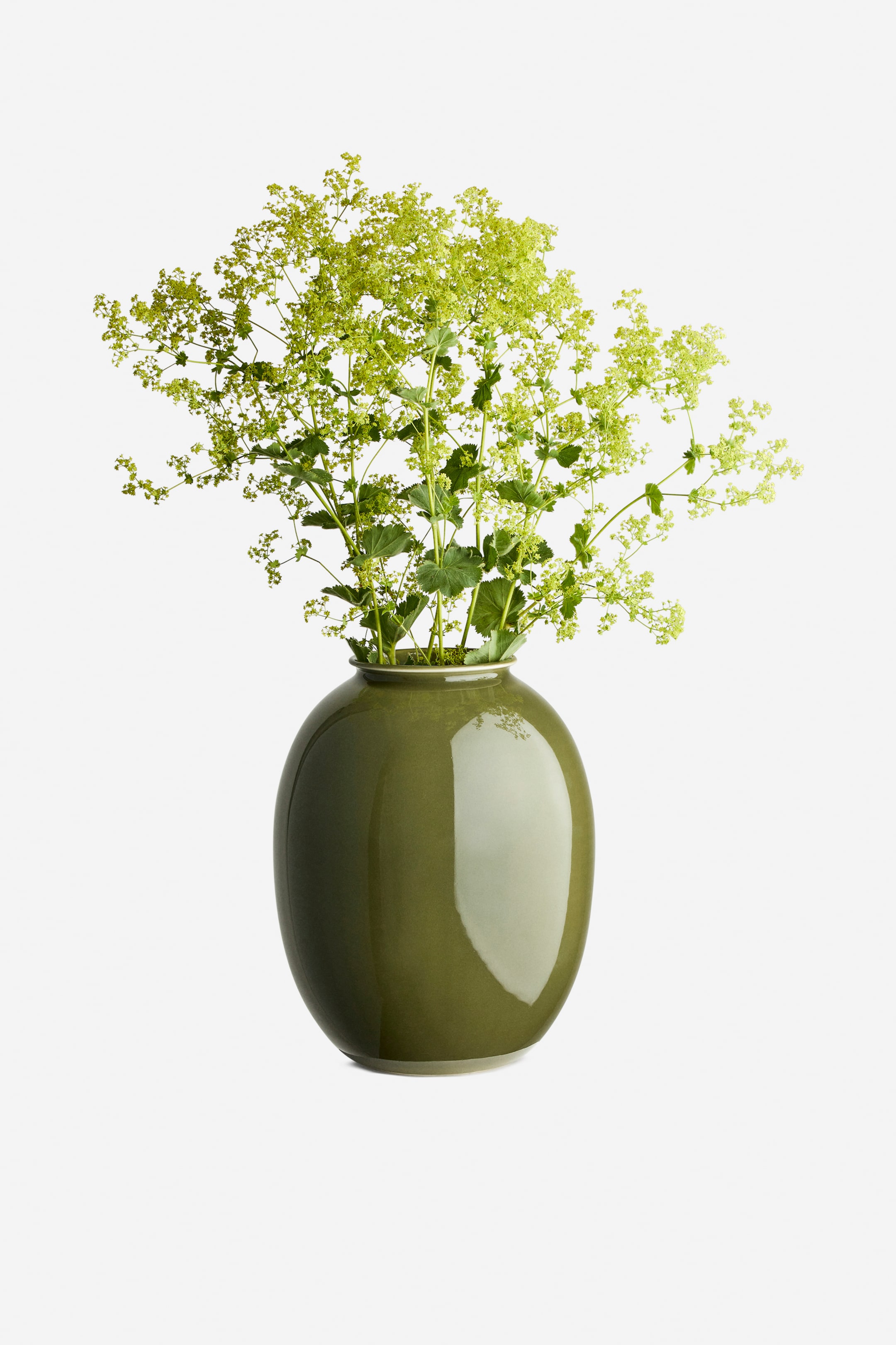 Large vase made from earthenware with a glazed surface. Height 25 cm, width 19.8 cm.