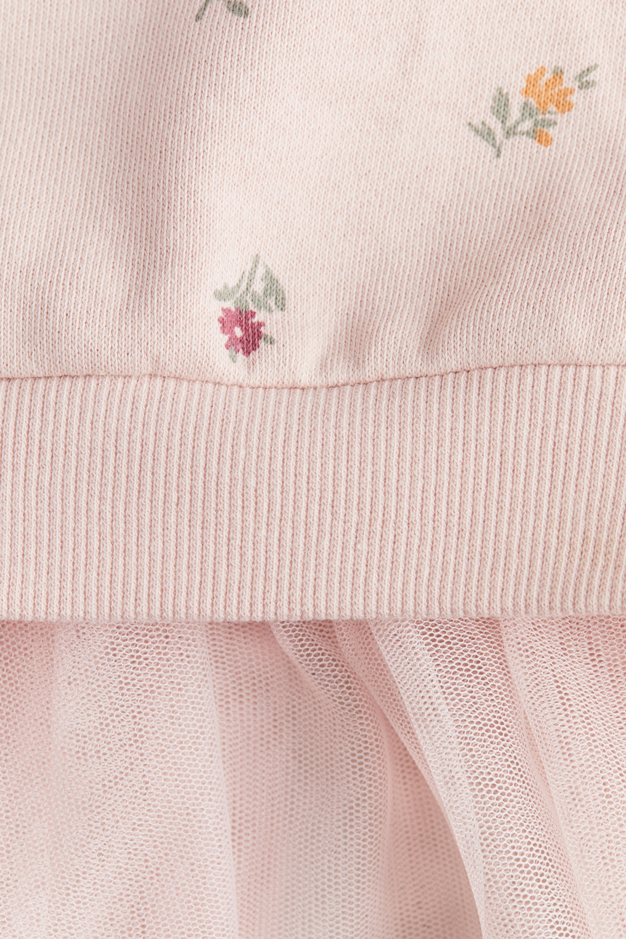 Dress in soft, lightweight sweatshirt fabric with a tulle skirt. Round, rib-trimmed neckline with press-studs on one side, dropped shoulders and long sleeves with rib-trimmed cuffs.