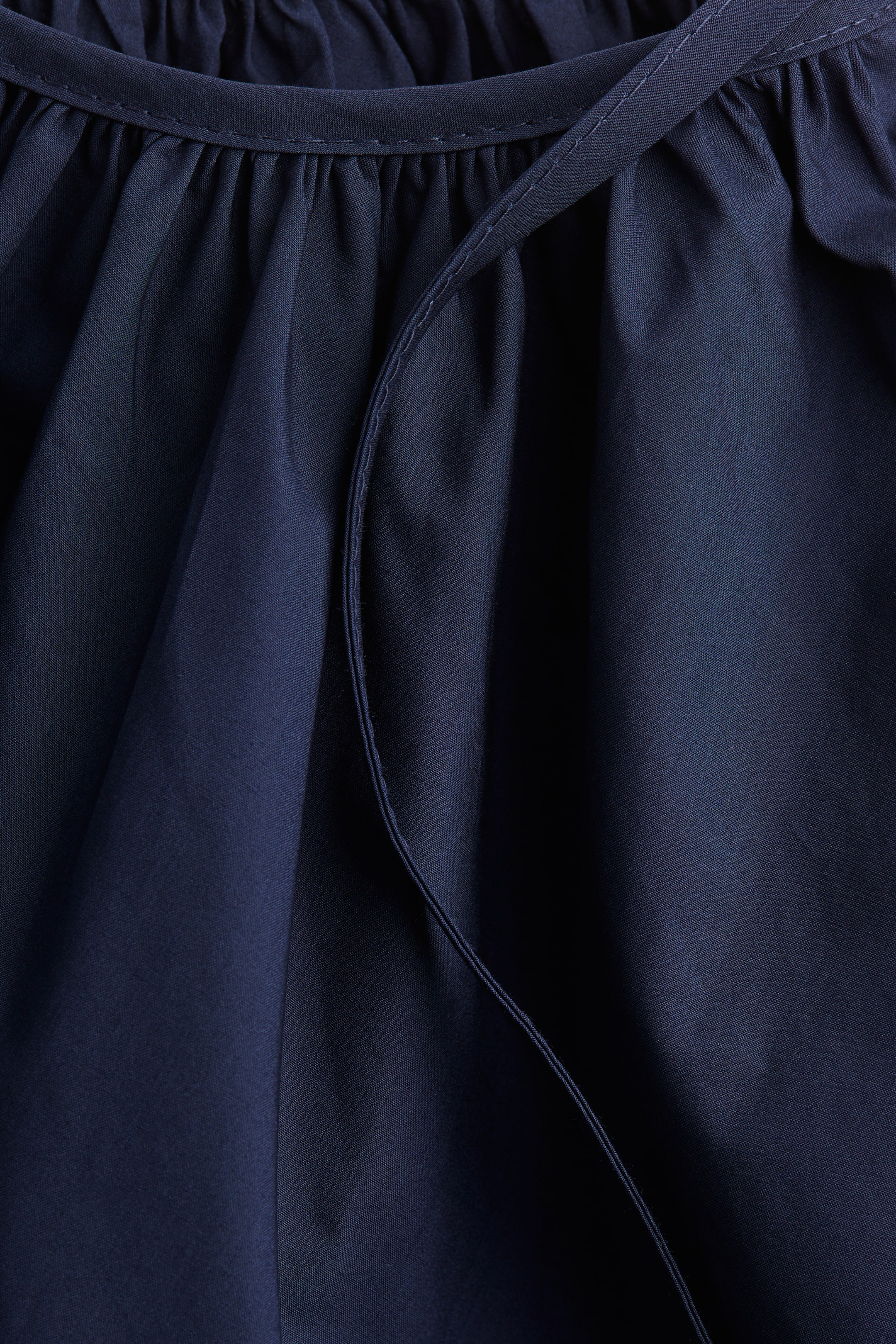 Circular mini skirt in an airy cotton weave with narrow ties at each side of the waist and a concealed zip at one side. Unlined.
