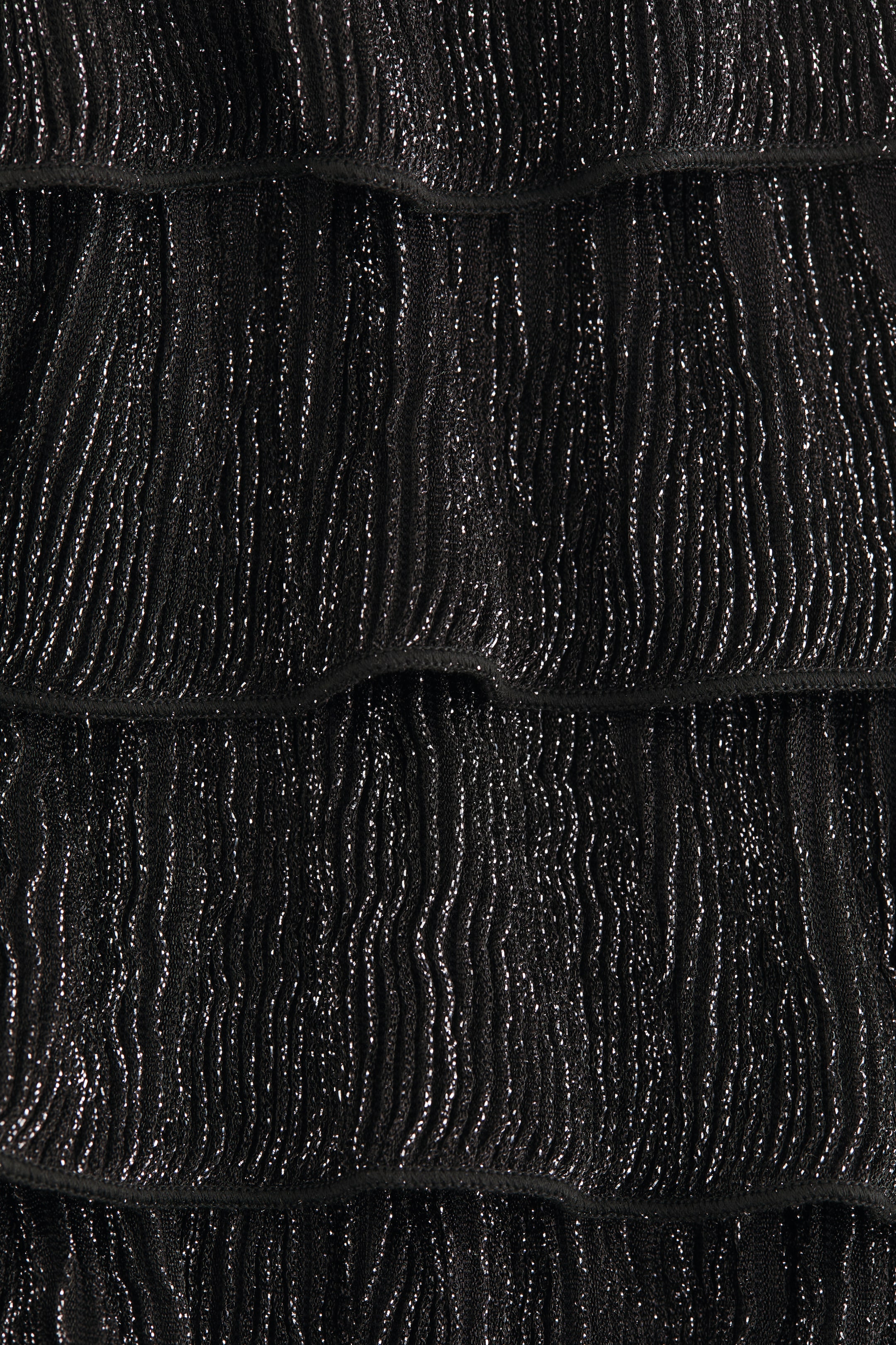 Short, fitted top in textured jersey featuring tiers with overlocked edges at the front. Round, gathered neckline, narrow halterneck ties and a low-cut back.
