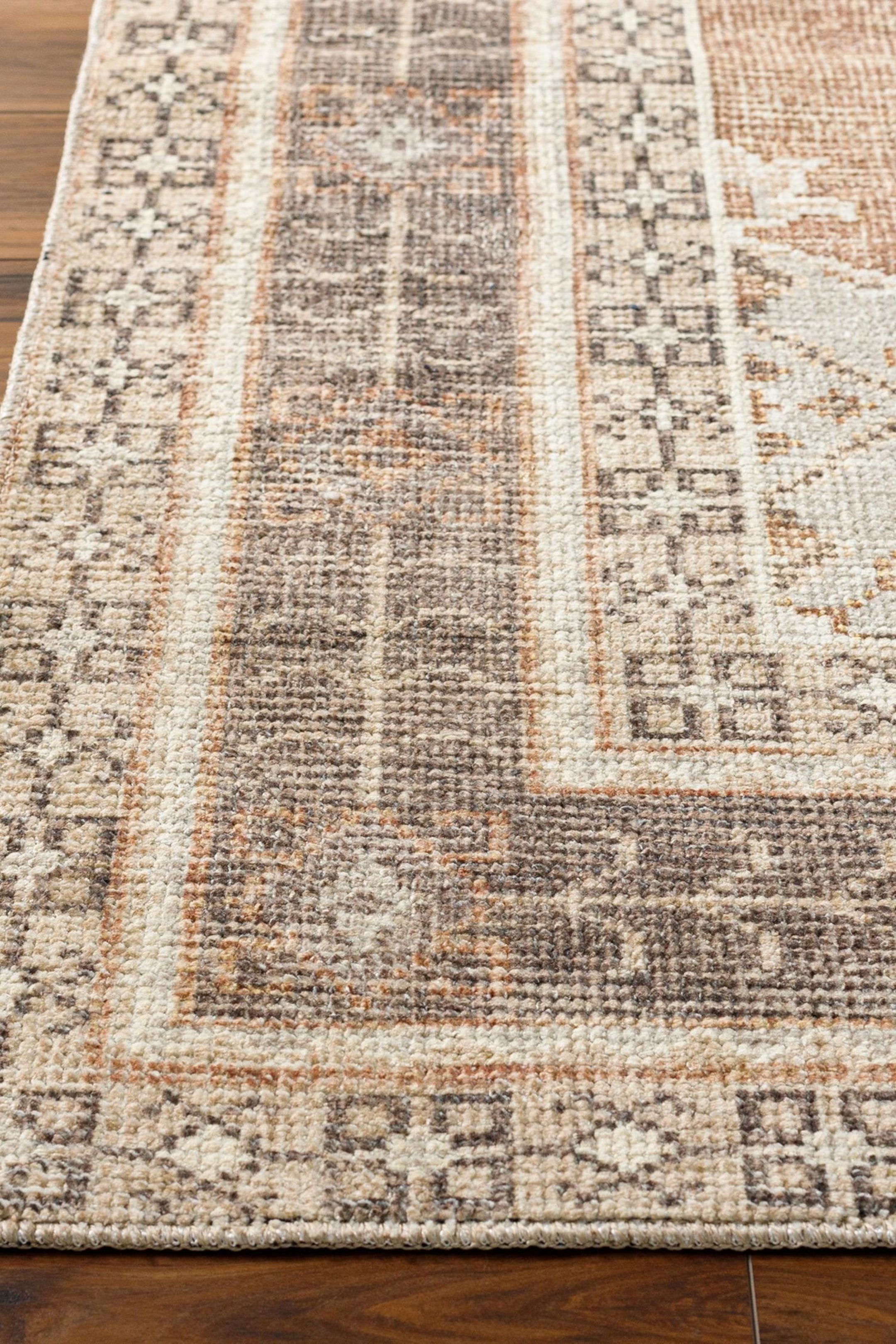 The Becki Owens x Livabliss Collection blends warm terracotta tones with vintage motifs, offering a durable yet soft Turkish-crafted rug that adds antique charm and timeless elegance to any space.