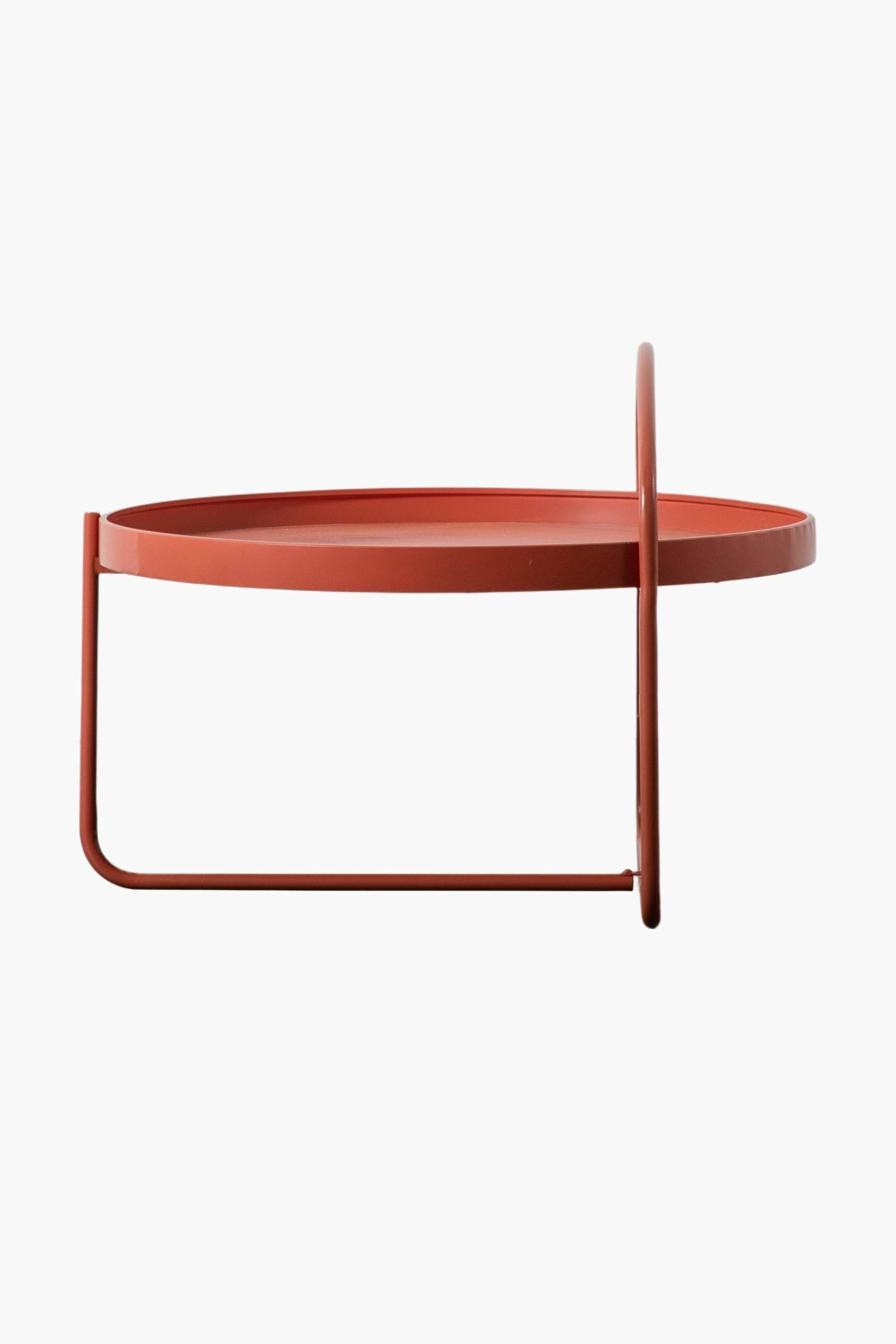 The stylish design of this unusual coffee table features a tray-style top, which lifts off for added practicality, and a continuation of one section of the base, up and over the table to create a ‘handle’ effect. Both the tray top and base are made from metal with a painted finish. Dimensions: W650mmxD650mmxH500mm