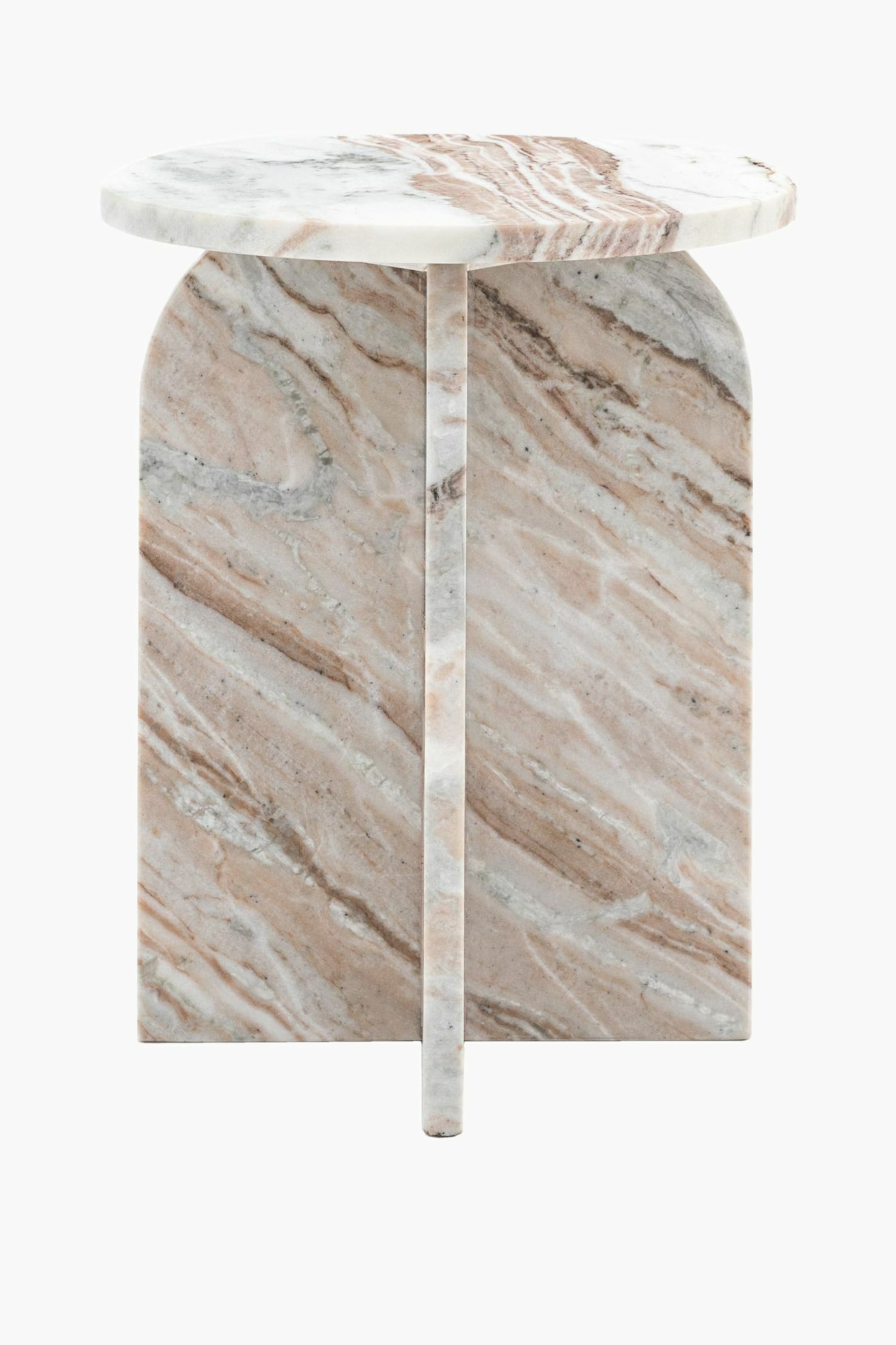 Add a touch of style to a room with this beautiful table, crafted from marble. The solid top and base show the natural pattern of the marble to great effect whilst the base features gently curved tops to create a stunning design feature.Dimensions: W400mmxD400mmxH500mm