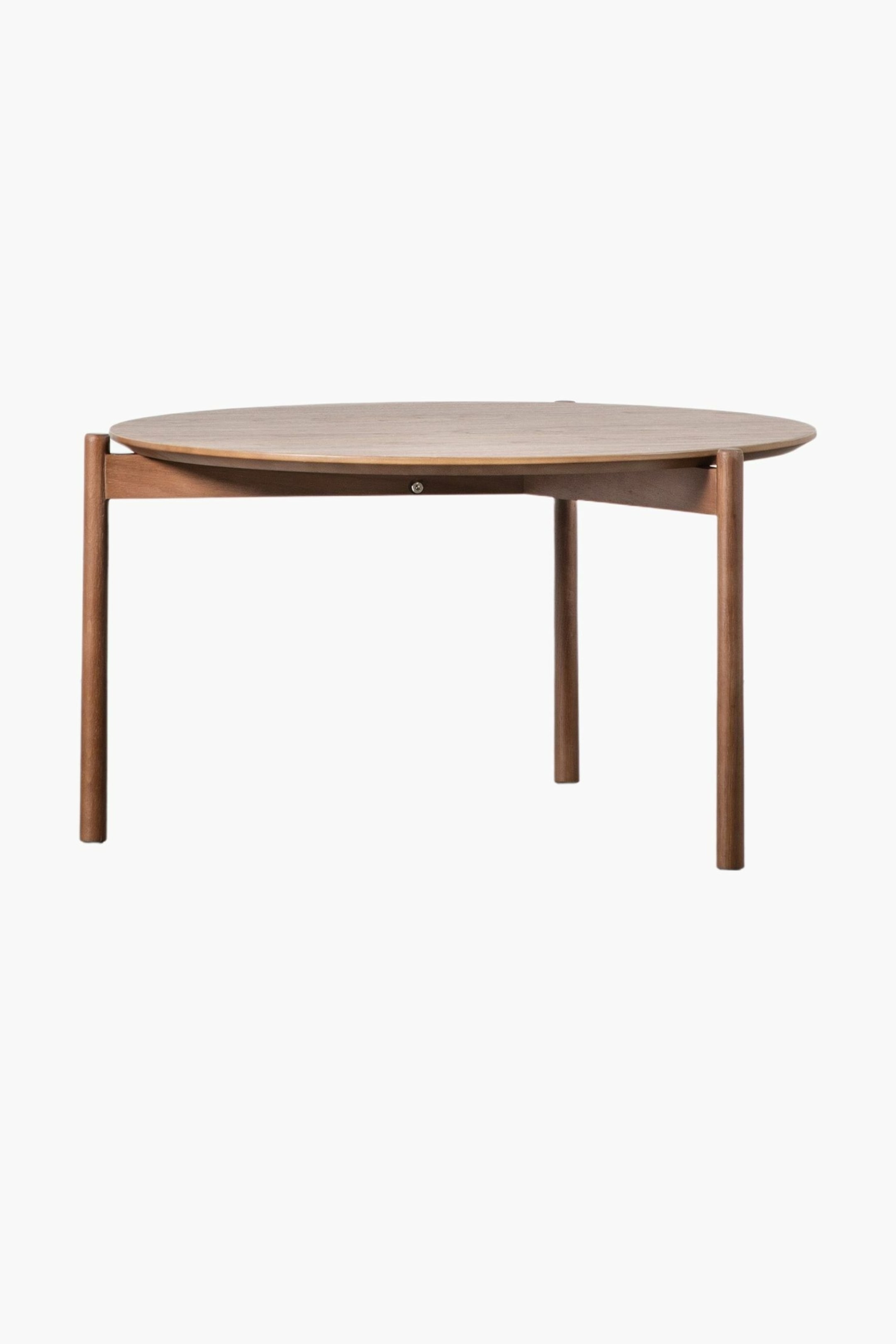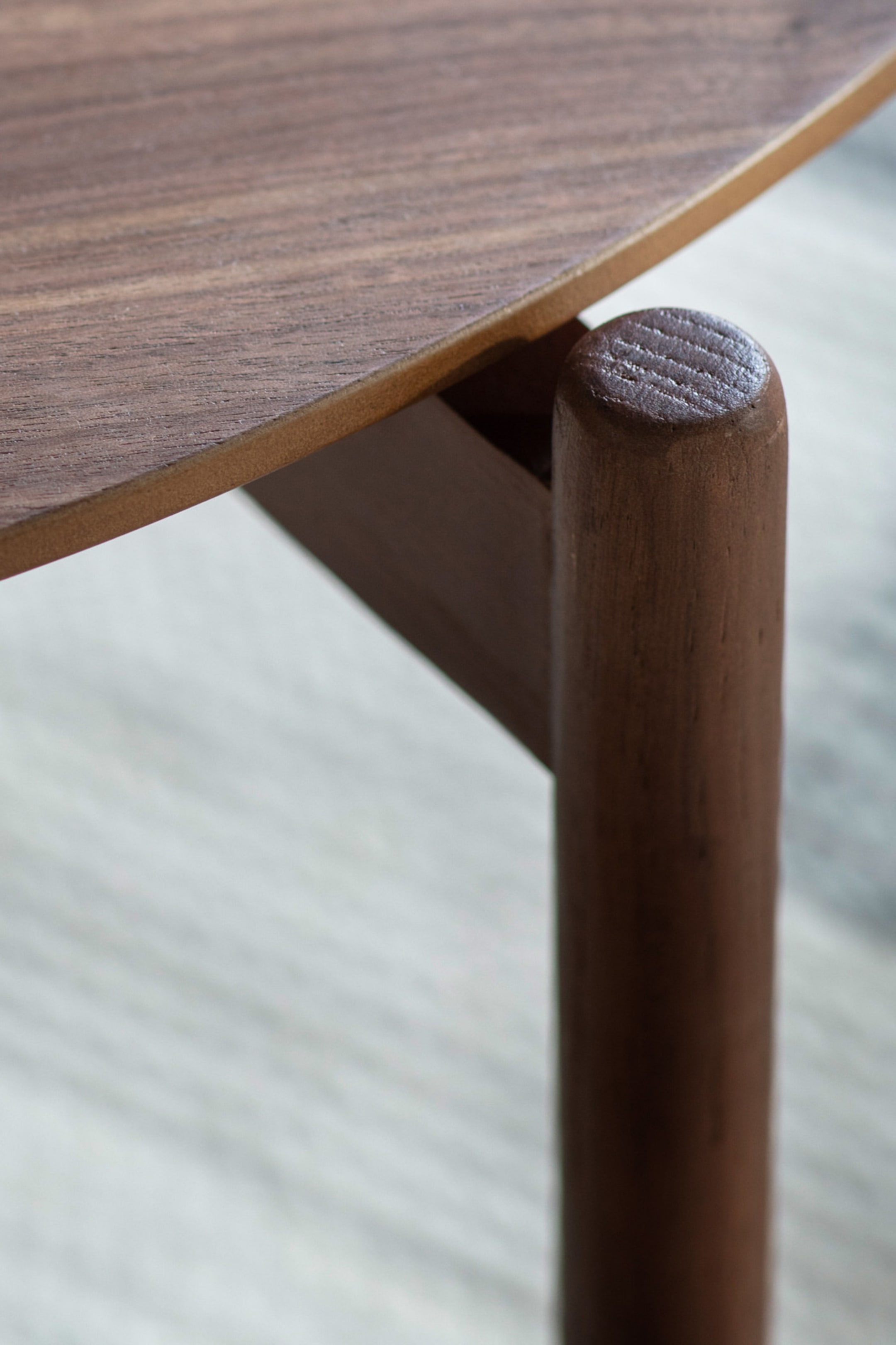 Stylish coffee table offering a simple yet stunning design. The circular top is crafted from walnut veneer and sits on the solid oak base, which is stained to match the top, with the ends of elegant round legs showing to echo the shape of the top.Dimensions: W700mmxD700mmxH400mm