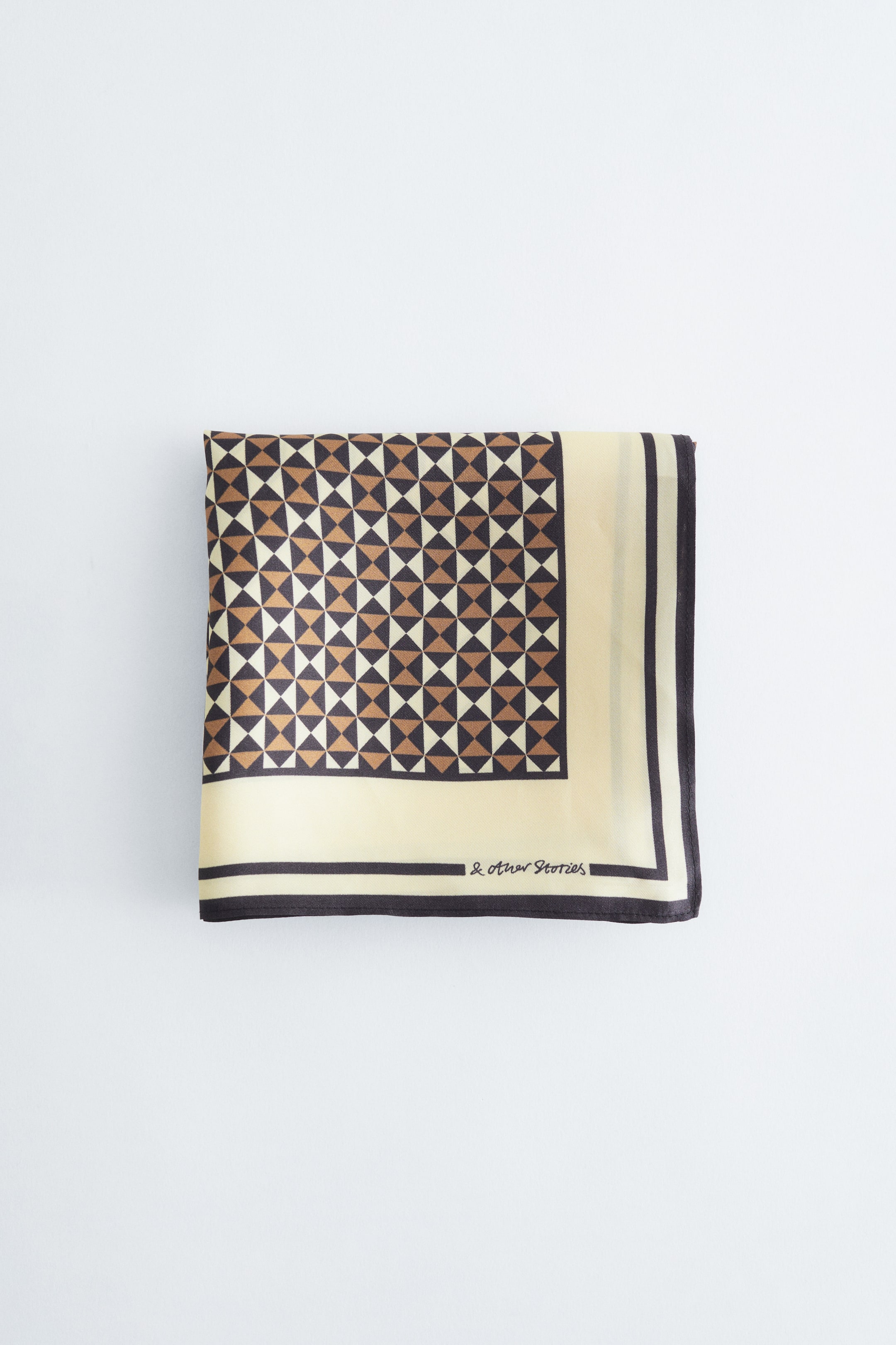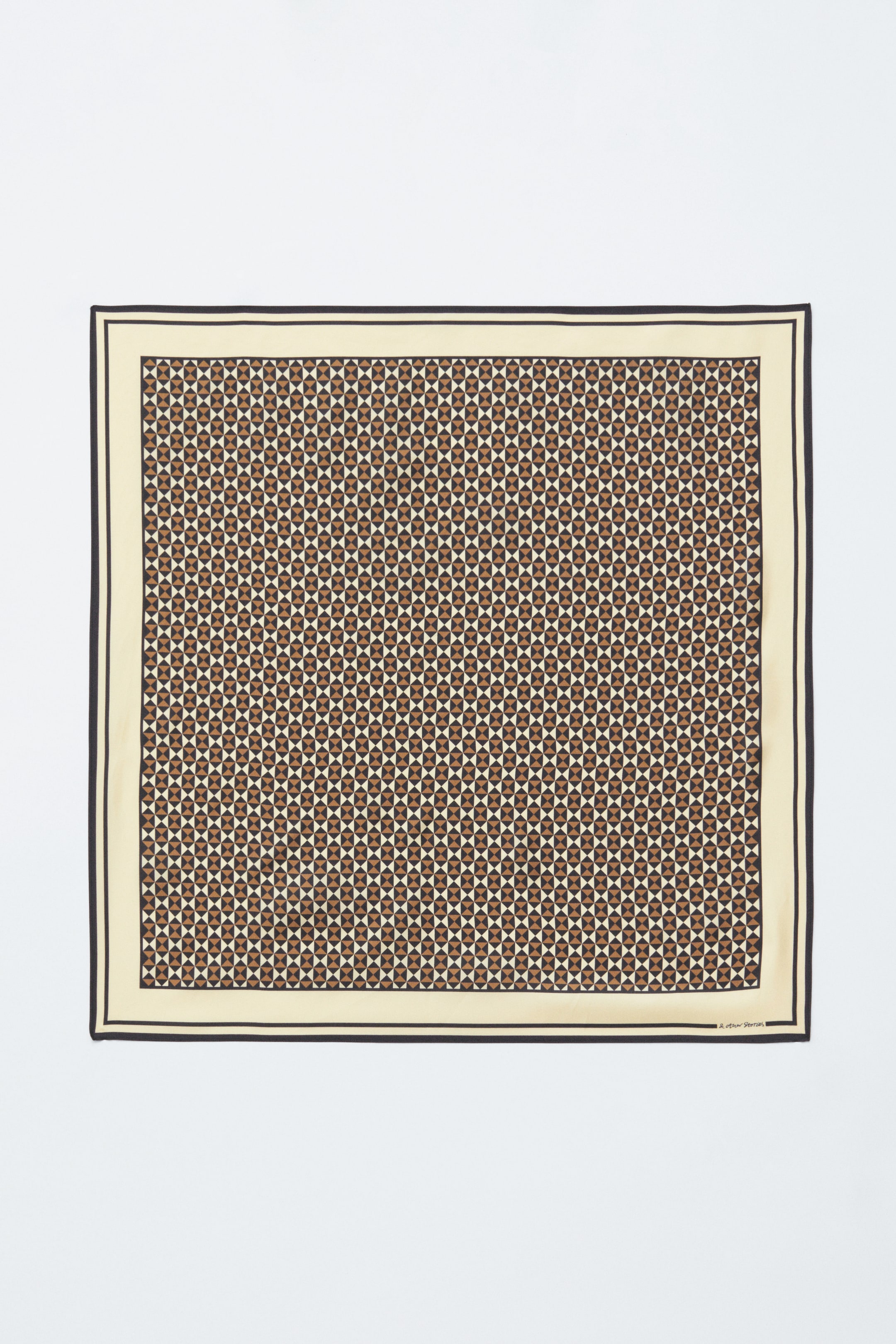 This lightweight square scarf is made from softly draping mulberry silk twill and features a graphic print motif.