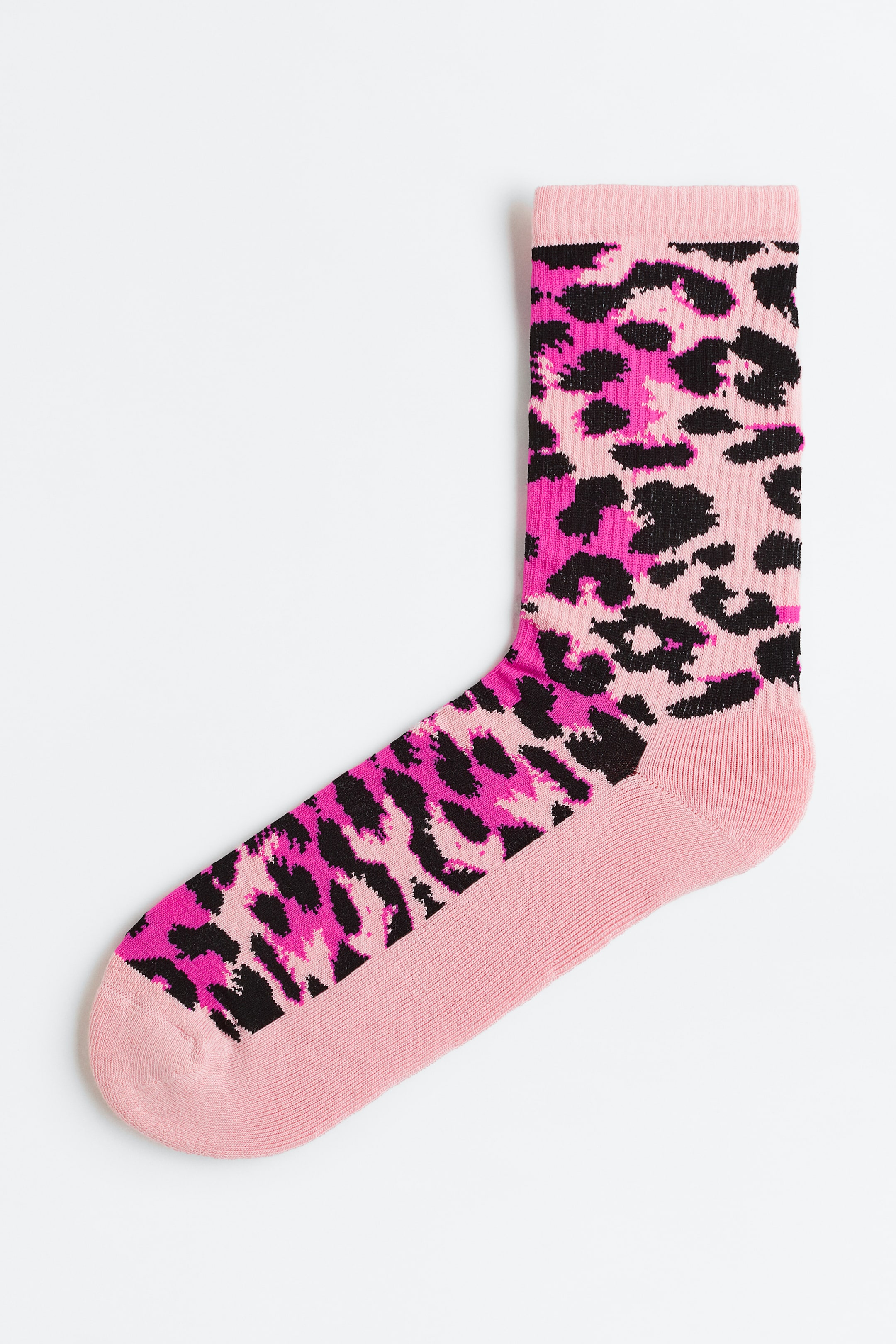 Socks in a soft, fine-knit cotton blend with ribbed shafts and elasticated tops.