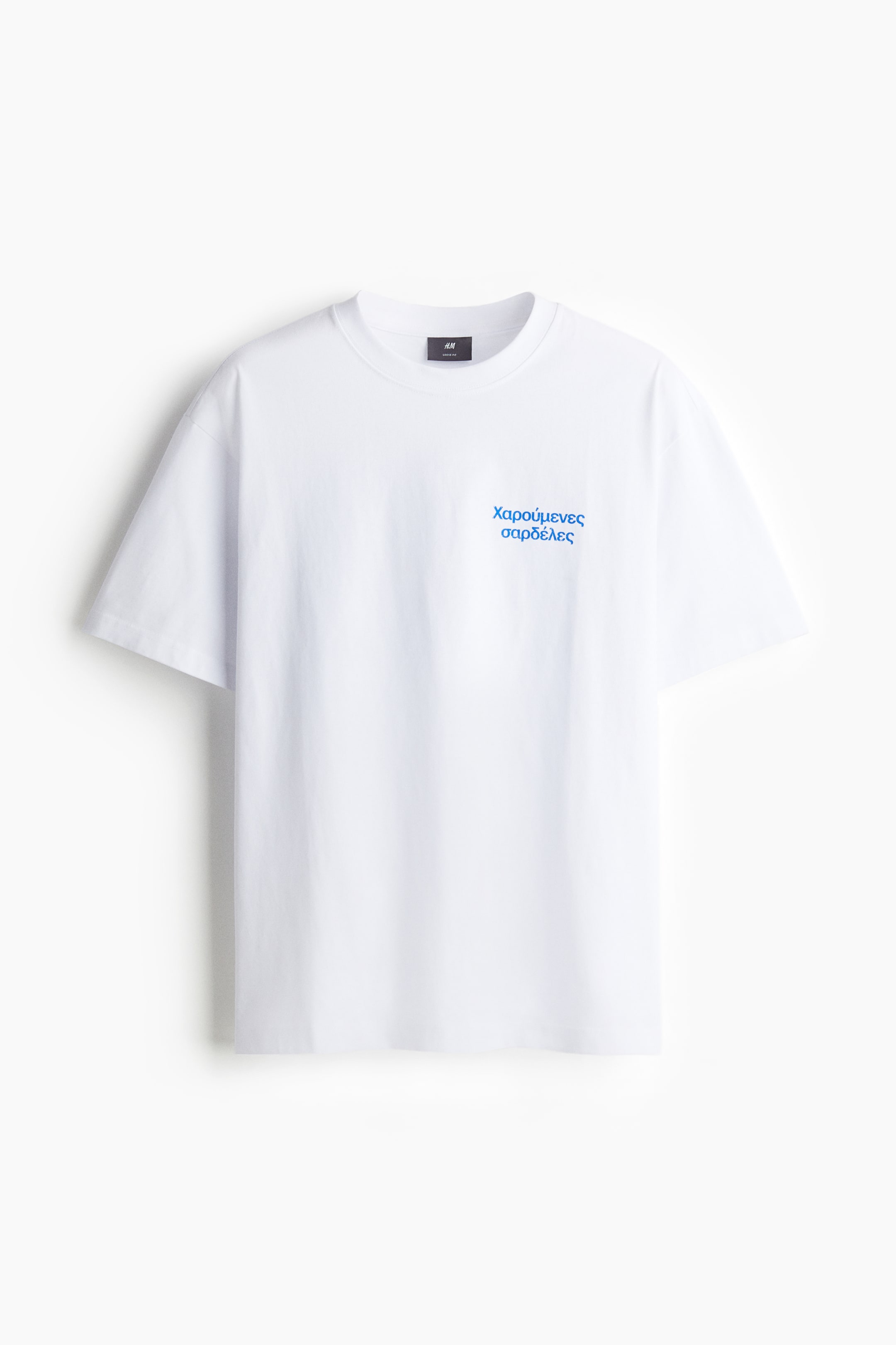 T-shirt in midweight cotton jersey with a print motif, round, rib-trimmed neckline, dropped shoulders and a straight-cut hem. Loose fit for a generous but not oversized silhouette.
