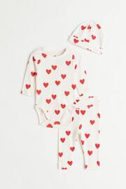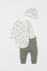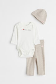Set with a bodysuit, a pair of trousers and an accessory in supersoft cotton jersey. Bodysuit with a round neckline, long sleeves and press-studs at the bottom for easy changing. Gathered seams around the legs for a more comfortable and snug fit around the nappy. Trousers with a foldover panel at the waist and cuffed hems.