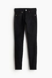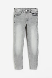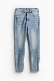 Jeans in slightly stretchy denim with a high waist, zip fly and button, fake front pockets, a real coin pocket, real back pockets and skinny legs.