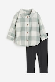 Set with a shirt in soft cotton flannel and a pair of leggings in supersoft, ribbed jersey. Shirt with a collar, buttons down the front, dropped shoulders and long sleeves with buttoned cuffs. Leggings with soft, adjustable elastication at the waist for a comfortable fit over the tummy.
