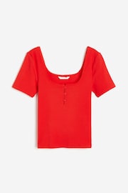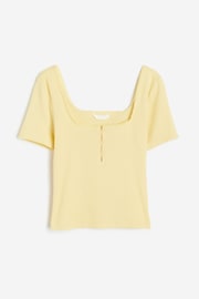 Fitted top in ribbed jersey with a square, picot-trimmed neckline at the front and back. Short sleeves, buttons at the top and a straight-cut hem.