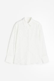 Oversized shirt in airy cotton broderie anglaise featuring a collar and concealed buttons down the front. Double-layered yoke with a box pleat at the back, gently dropped shoulders and long sleeves with a slit and button at the cuffs. Scalloped hem.