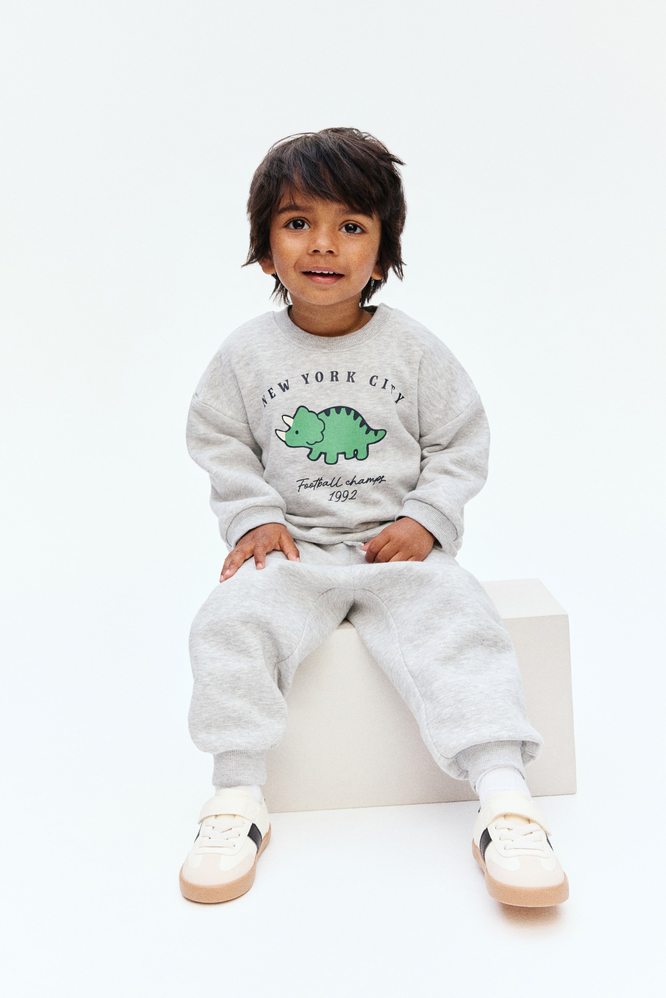 Set with a top and pair of joggers in sweatshirt fabric with a soft brushed inside. Top with a round, rib-trimmed neckline with press-studs on one side (except in sizes 2–4Y), dropped shoulders and ribbing at the cuffs and hem. Joggers with an elasticated, drawstring waist and rib-trimmed hems.