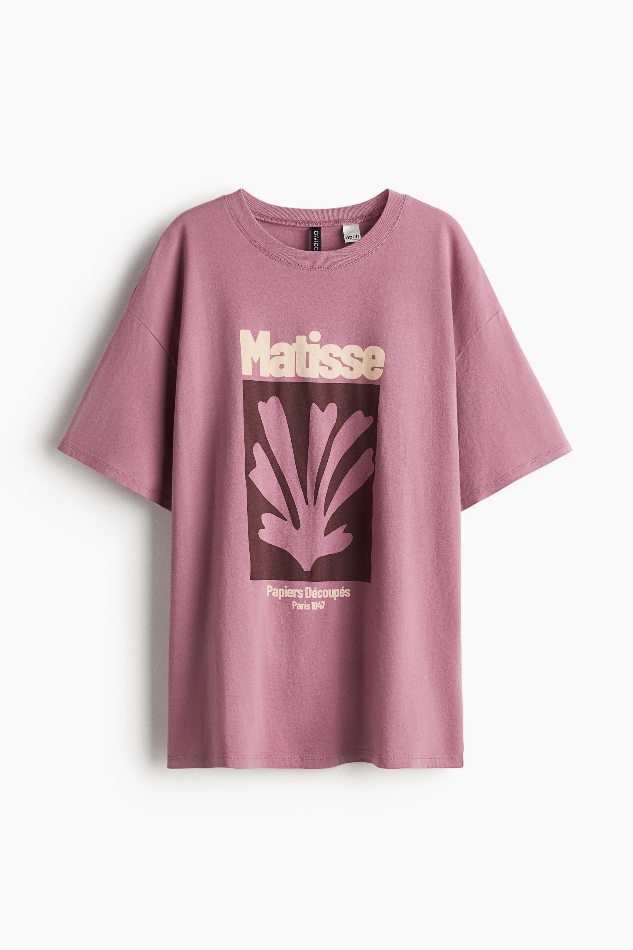 Oversized T-shirt in printed cotton jersey with a round, rib-trimmed neckline, dropped shoulders and short sleeves.