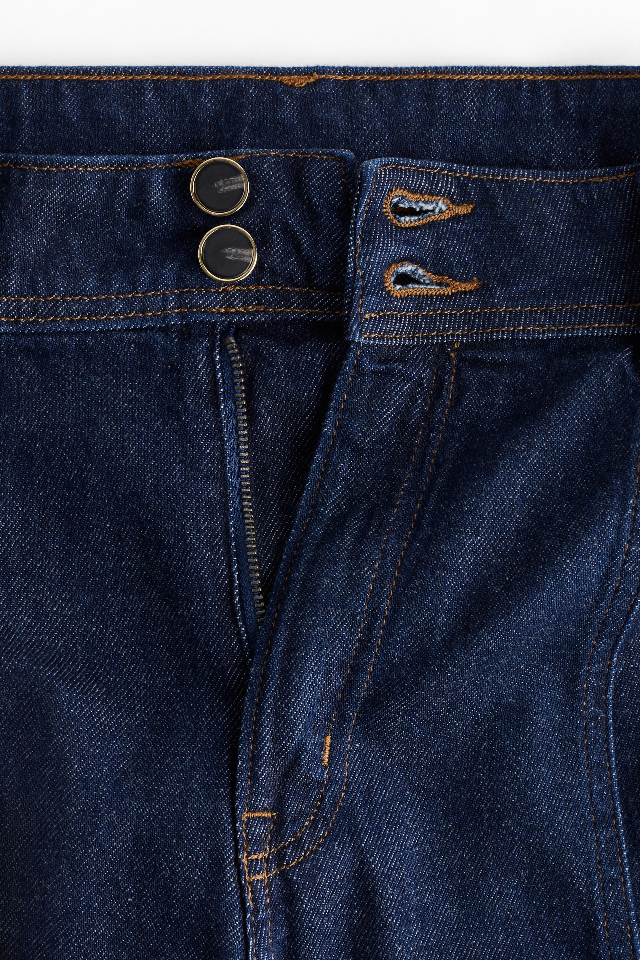 Jeans in rigid cotton denim that feels firm at first but then softens and loosens with wear. Wide leg with a regular fit from the waist to the hip and a wide cut from the thigh to the hem. High waist with a zip fly and buttons. Visible seams down the front and back, and open back pockets. Regular length, designed to hit the top of the foot with little or no stacking. Effortlessly flattering no matter how you style them.