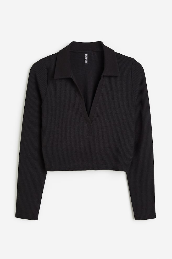 Save Rib-knit polo shirt to favourites Enlarge available colours Collared Tops Add a touch of preppiness to your smart/casual attire with a collared top. Find women's collared ribbed tops to wear with jeans and skirts as well as varsity-style polo crop tops. Discover zip-up tops and T-shirts to mix up your everyday outfits. From crop tops to oversized long sleeves, you’ll find a range of styles, prints and colours to easily work with your wardrobe. Experiment with necklines and shapes and try a turtleneck top . Or, take a look through our shirts for more classic cuts.