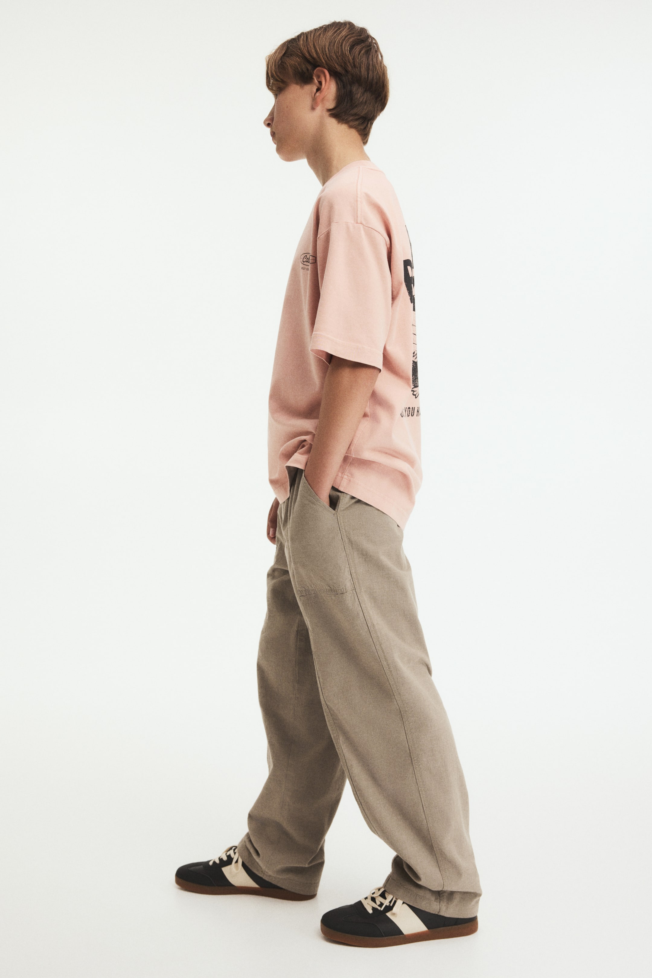Joggers in cotton poplin with a loose fit. Elasticated, drawstring waist, fake fly, front patch pockets and a welt pocket at the back.