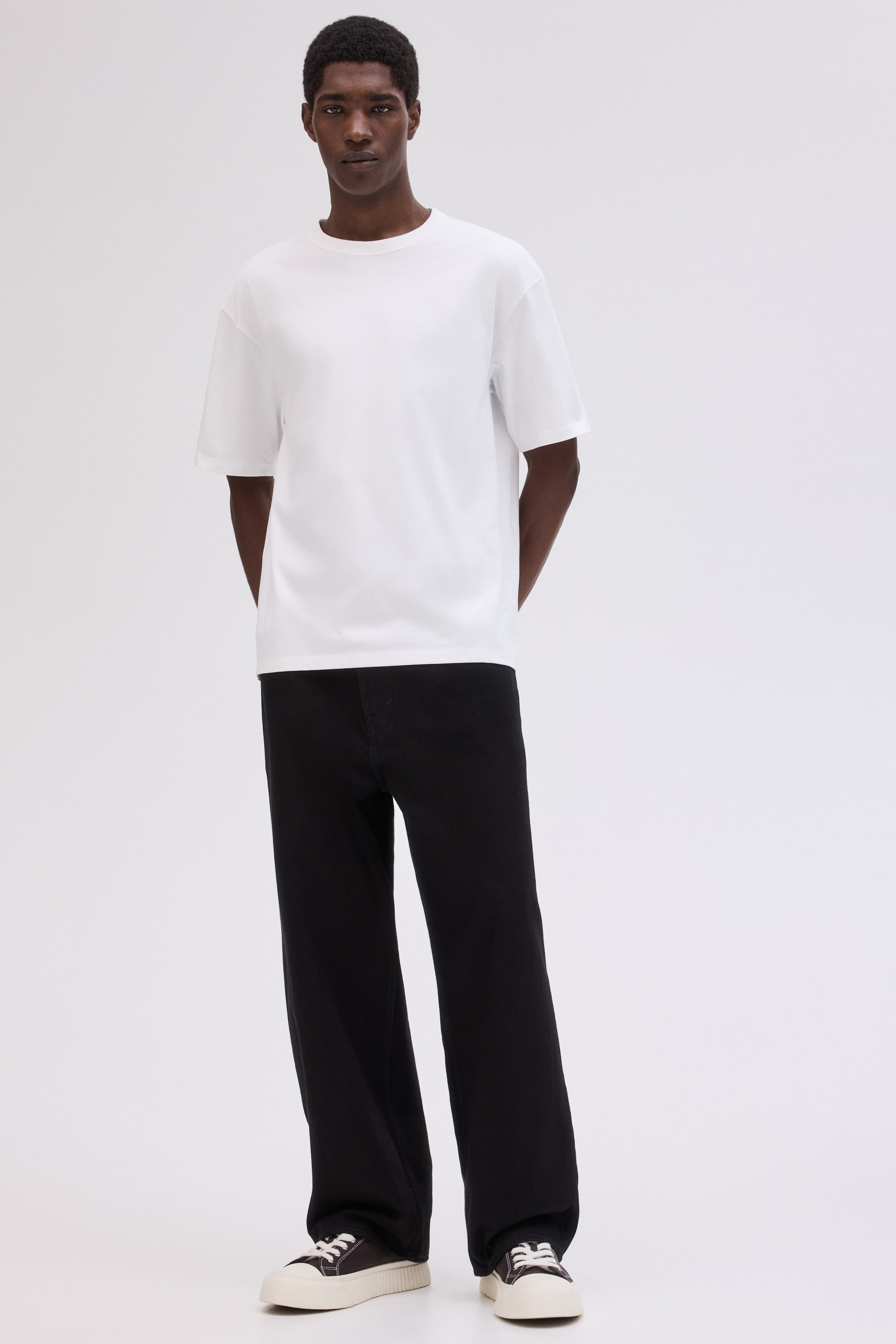 5-pocket jeans in rigid cotton denim. Rounded leg and a baggy fit from the seat to the hem with plenty of room around the whole leg. Dropped crotch and stacked at the ankle. Regular waist and a zip fly. It's denim perfection.
