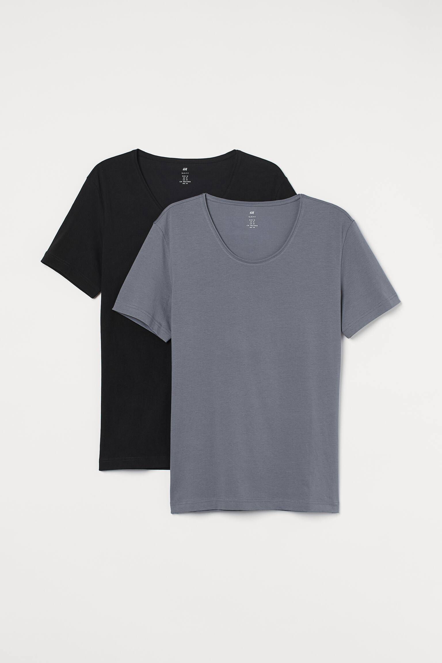 Our men's basic T-Shirts are trendy, versatile and pair well with everything in your wardrobe. Whether you're looking for practical workwear, or want to add stylish layers to your outfit of the day, our edit has every occasion covered. Discover our staple black and white T-Shirts for men in everything from V-neck to round neck, or you can go for coloured hues and stripes. There's also long and short sleeves to choose from, plus oversized T-Shirts if you prefer the slouchy-cool look. Browse all our separates and multipack options below, or browse for men's tank tops and hoodies.