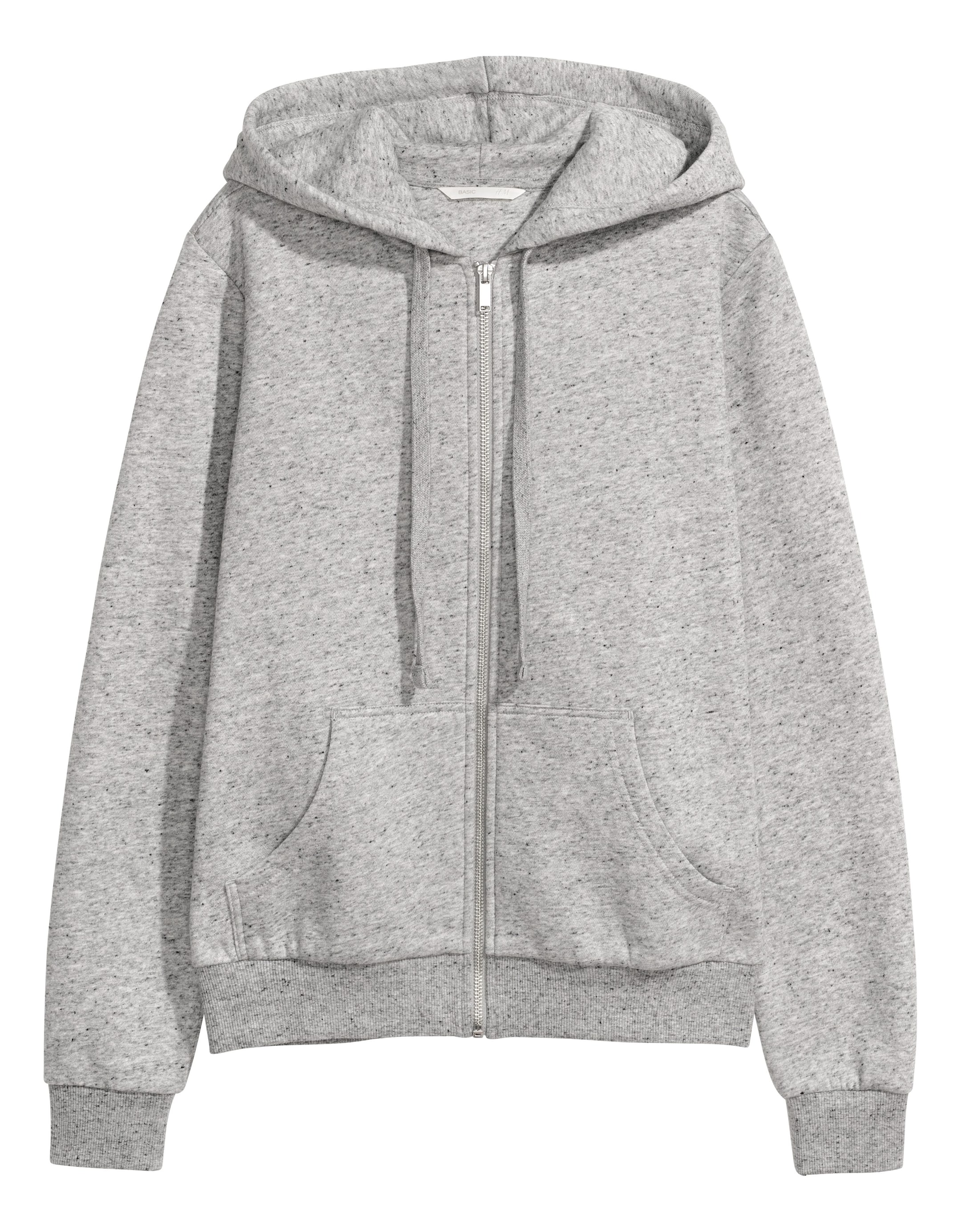 Jacket in sweatshirt fabric with a lined drawstring hood, zip down the front, side pockets and ribbing at the cuffs and hem.
