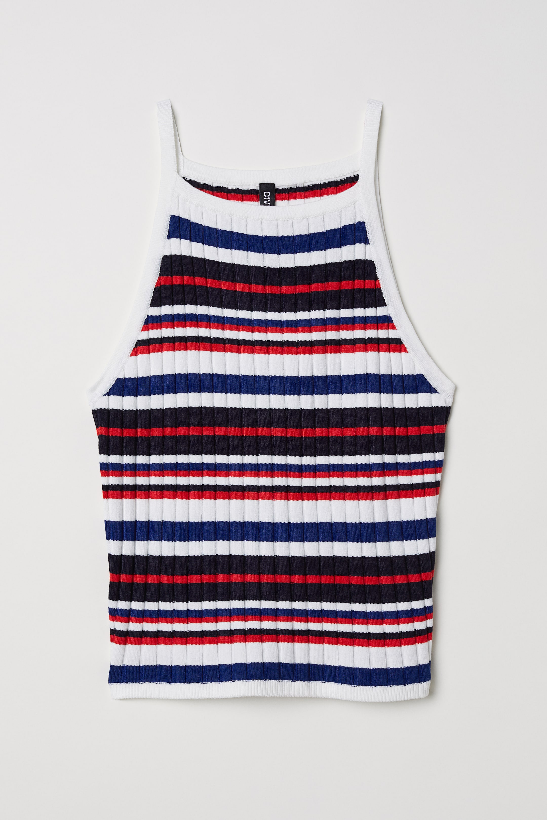 Short top in a soft rib knit in a narrow cut at the top with short, narrow shoulder straps.