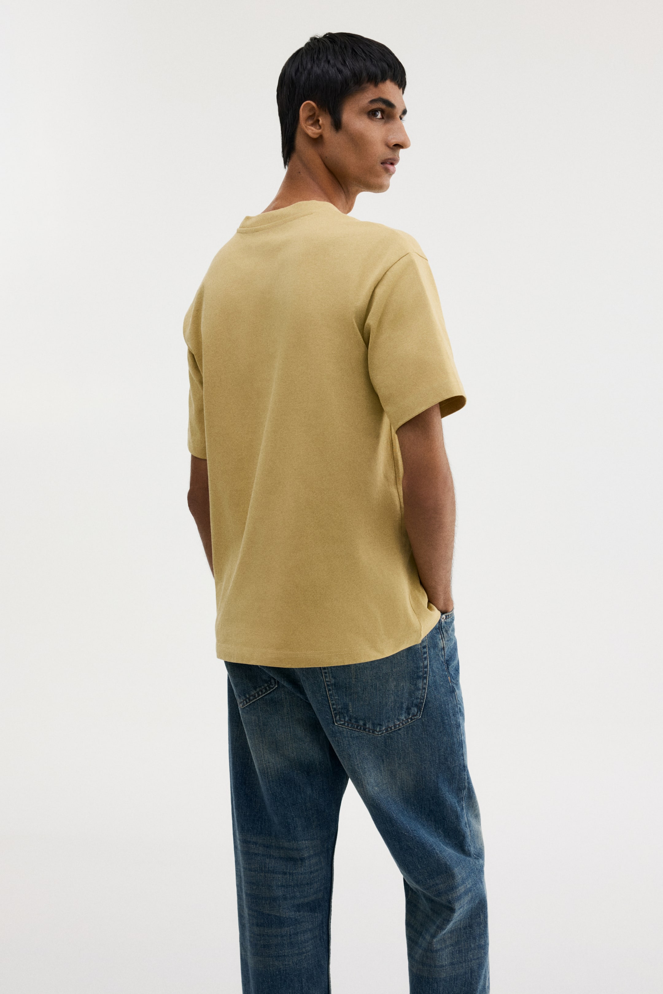 T-shirt in heavyweight cotton jersey with a round, rib-trimmed neckline, dropped shoulders and a straight-cut hem. Loose fit for a generous but not oversized silhouette.