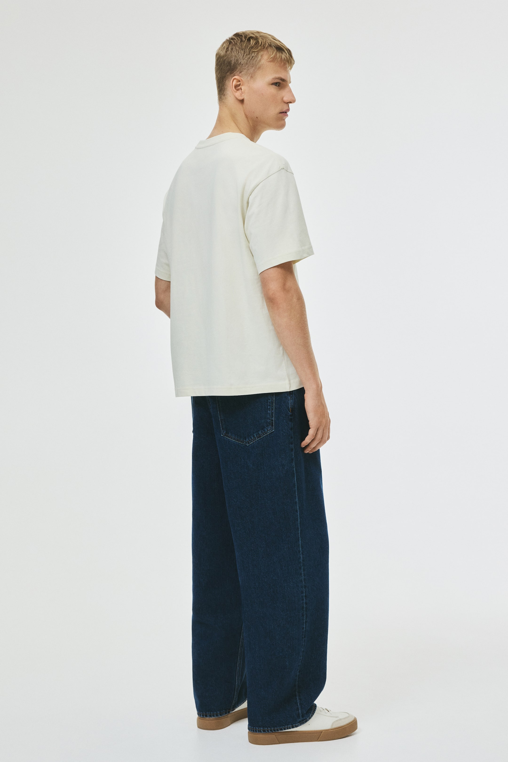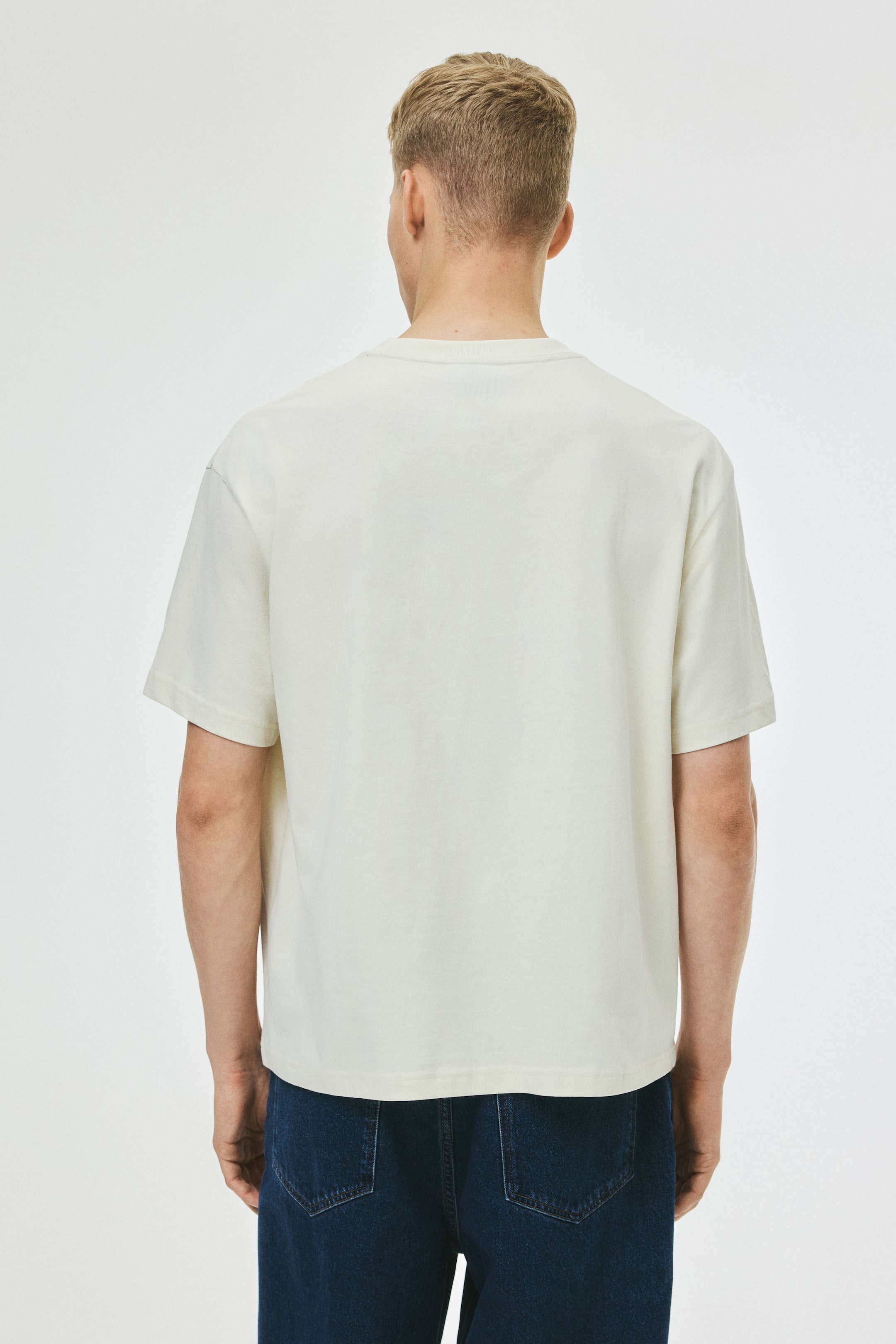 T-shirt in midweight cotton jersey with a print motif, round, rib-trimmed neckline, dropped shoulders and a straight-cut hem. Loose fit for a generous but not oversized silhouette.