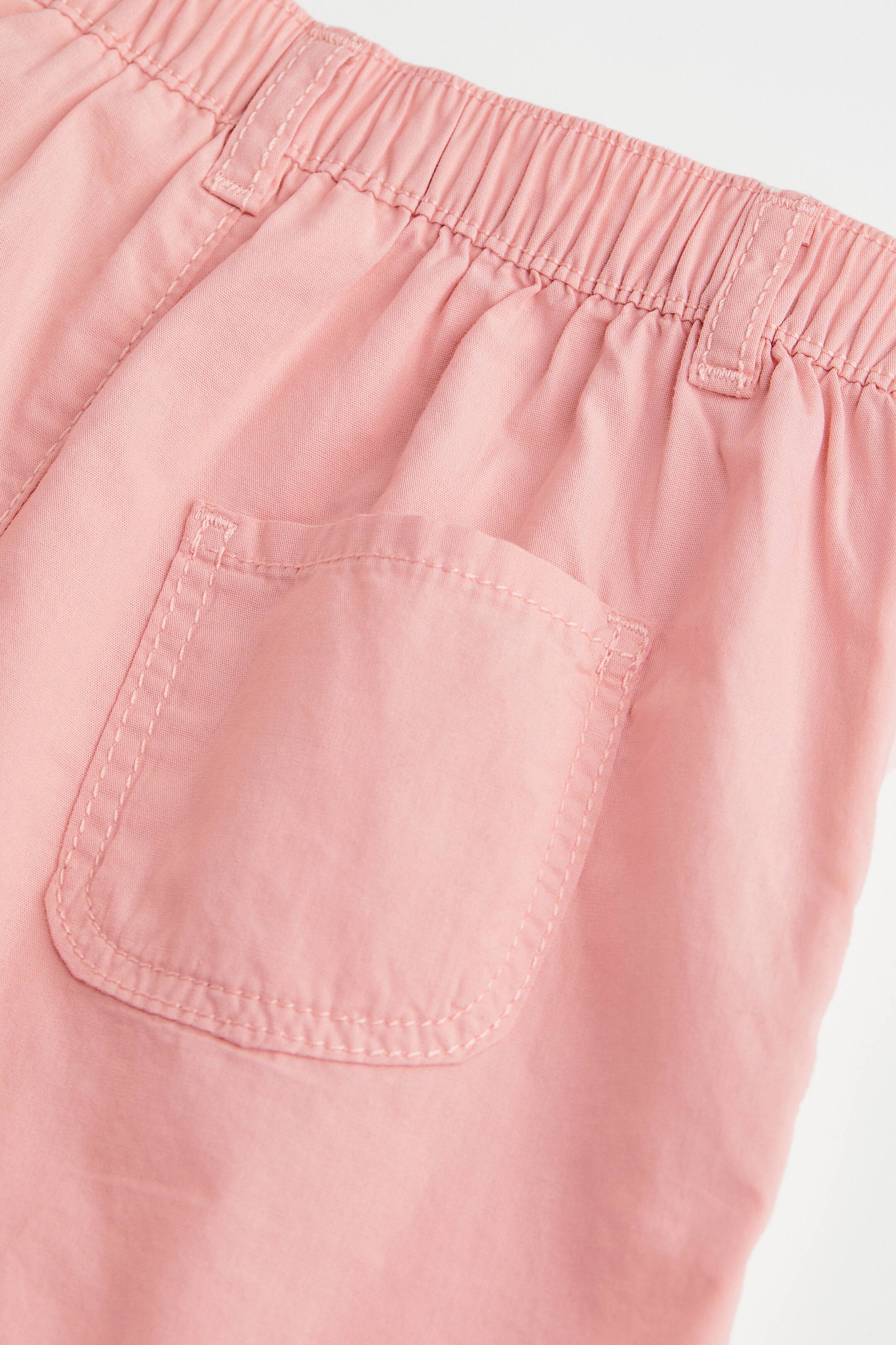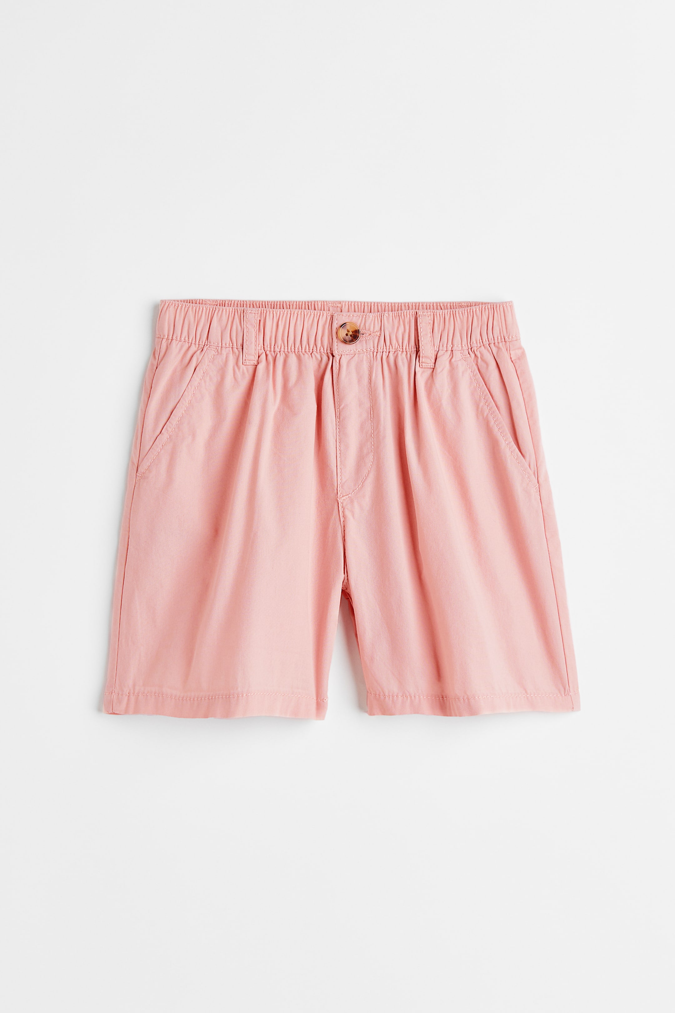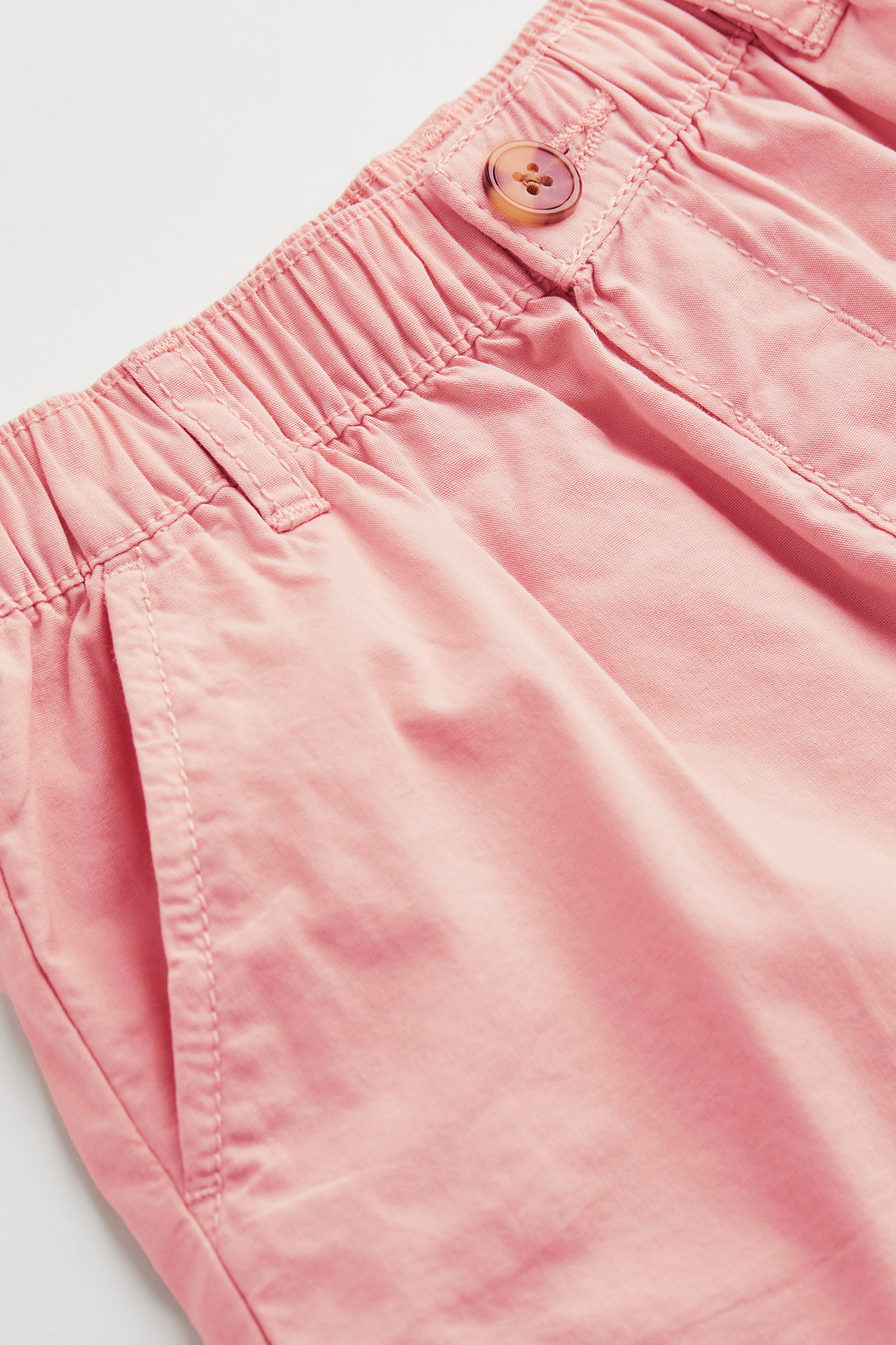 Shorts in cotton poplin with an adjustable, elasticated waist, pleats at the front and fly with a press-stud. Side pockets and fake back pockets.