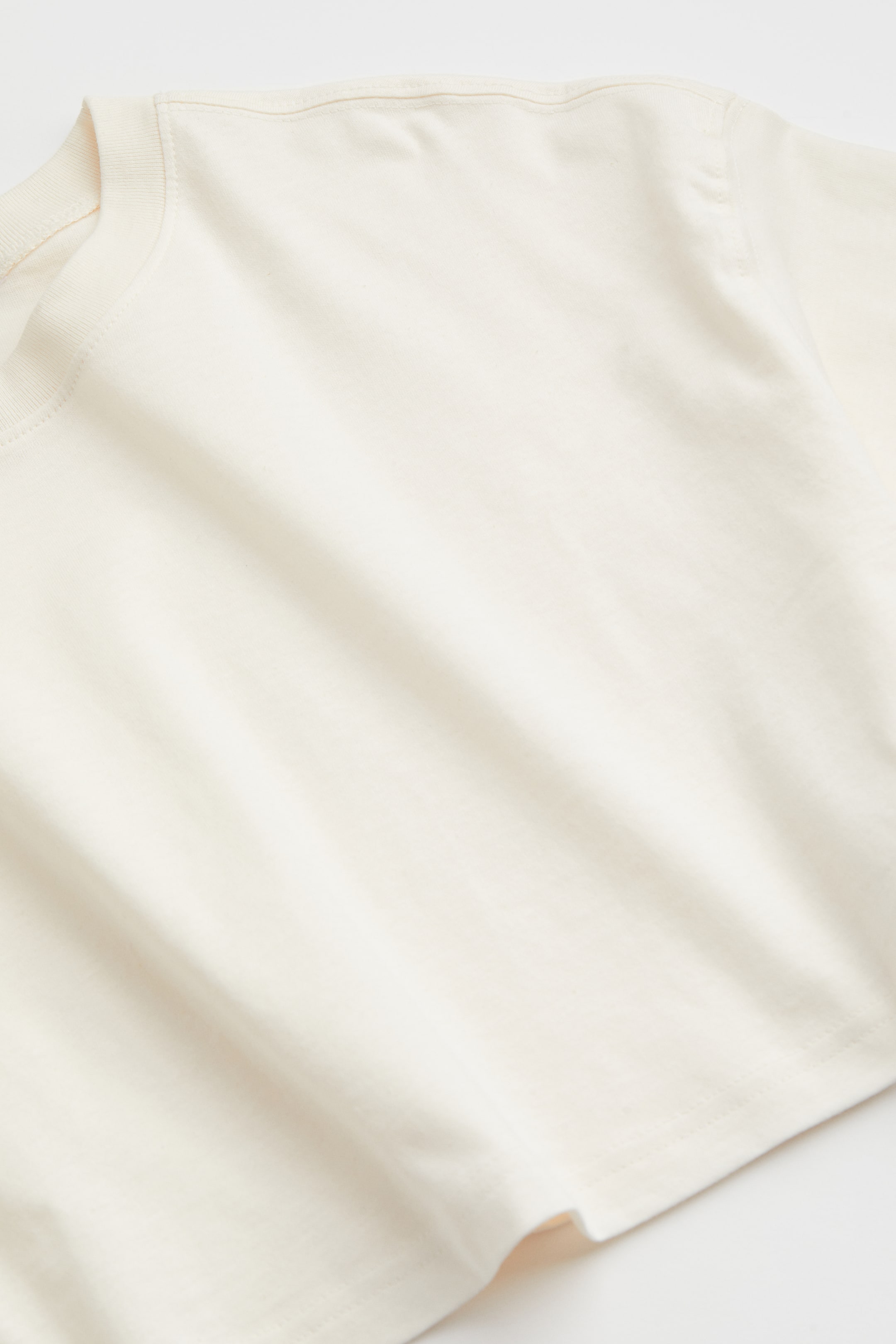 Boxy-style, cropped T-shirt in soft jersey with a round, rib-trimmed neckline, dropped shoulders and wide sleeves.