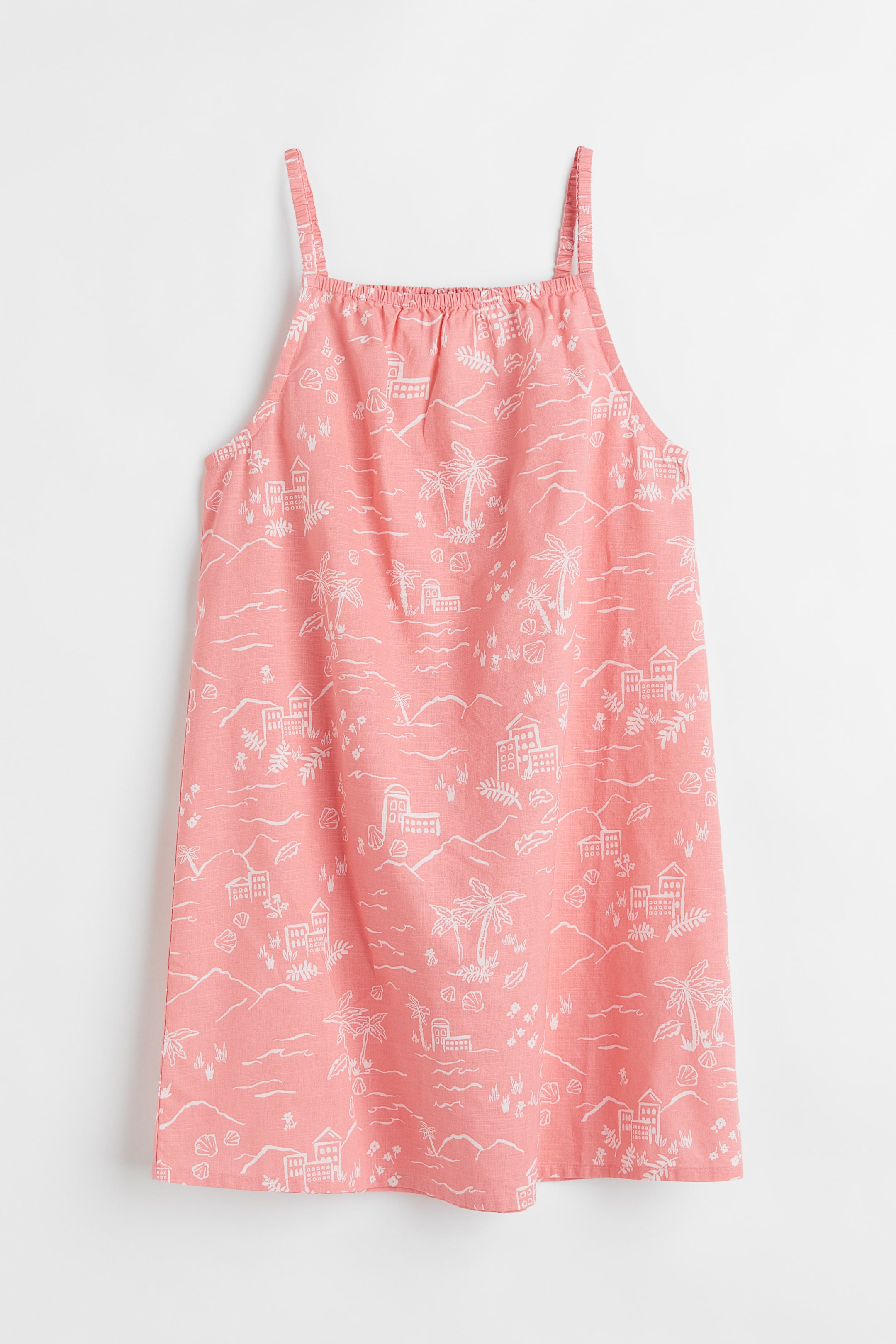 Easy-to-wear dress in an airy cotton weave. Relaxed fit with narrow, elasticated shoulder straps and elastication at the neckline and at the back. Unlined.