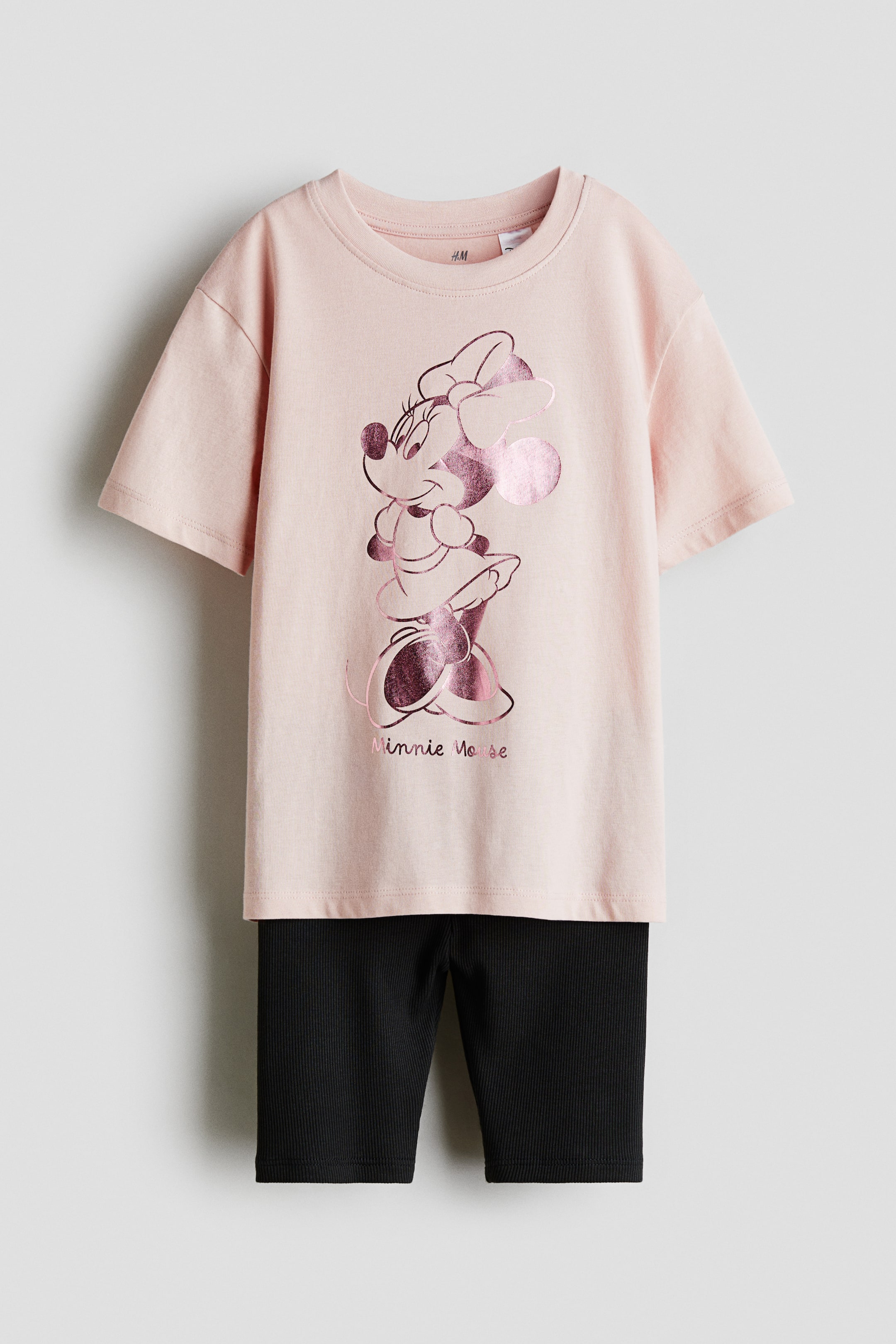 Set with a T-shirt and pair of cycling shorts in soft cotton jersey. T-shirt in a relaxed-fit with a motif on the front, a narrow, ribbed trim around the neckline and low dropped shoulders. Cycling shorts with an elasticated waist.