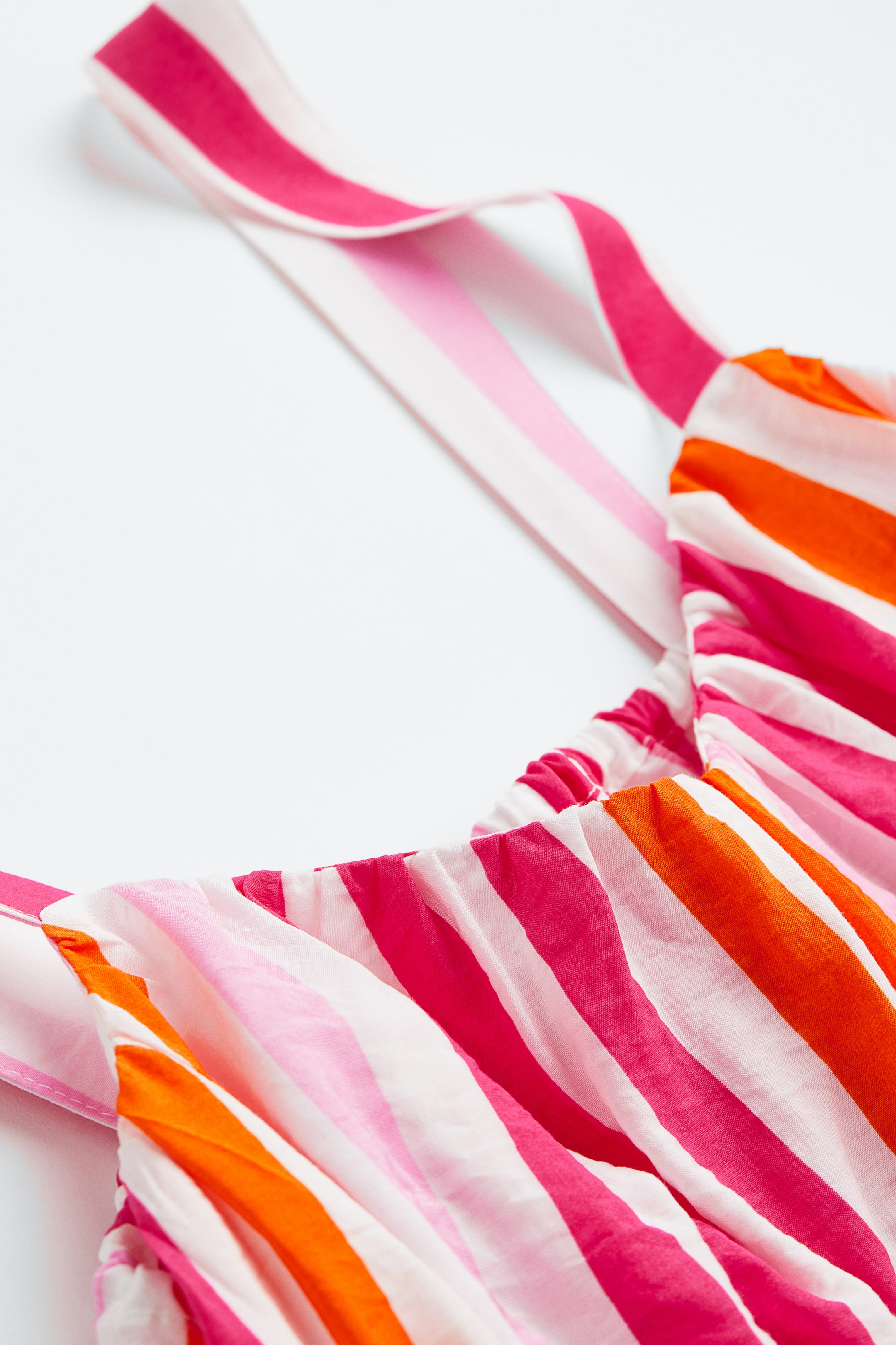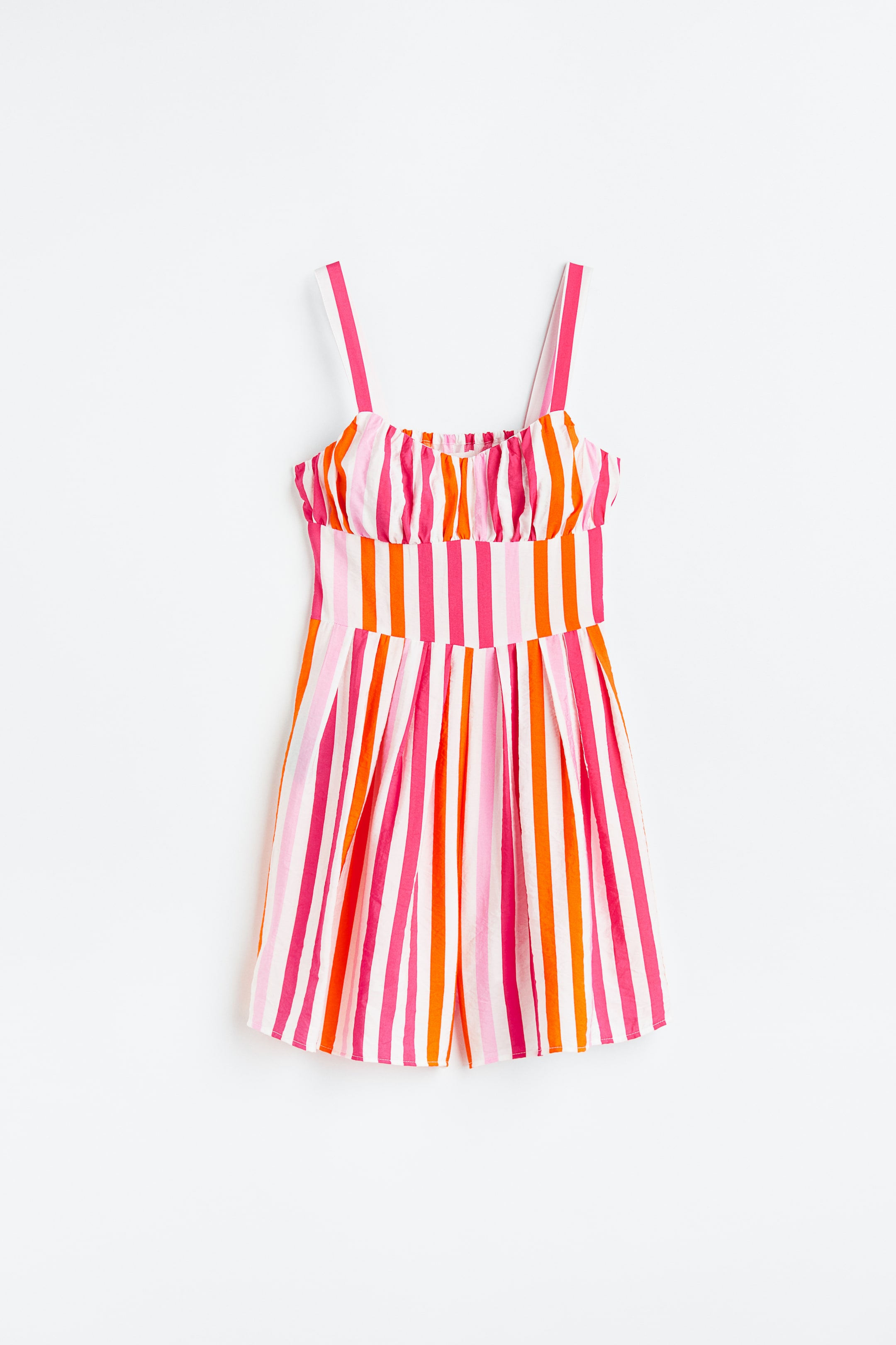 Playsuit in woven fabric with a sweetheart neckline and wide shoulder straps. Gathers at the bust, smocking at the back and a concealed zip at one side. Seam at the waist with pleats at the front.