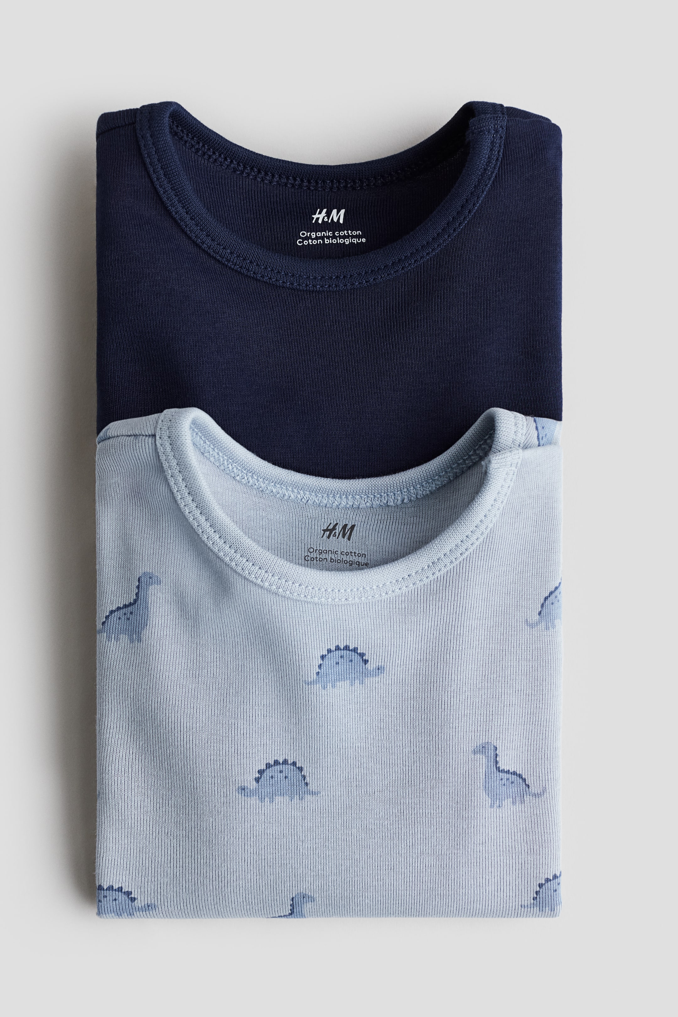 Long-sleeved bodysuits in supersoft cotton jersey with a concealed press-stud on one shoulder. Press-studs at the crotch and gathered seams around the legs for a more comfortable and snug fit around the nappy.