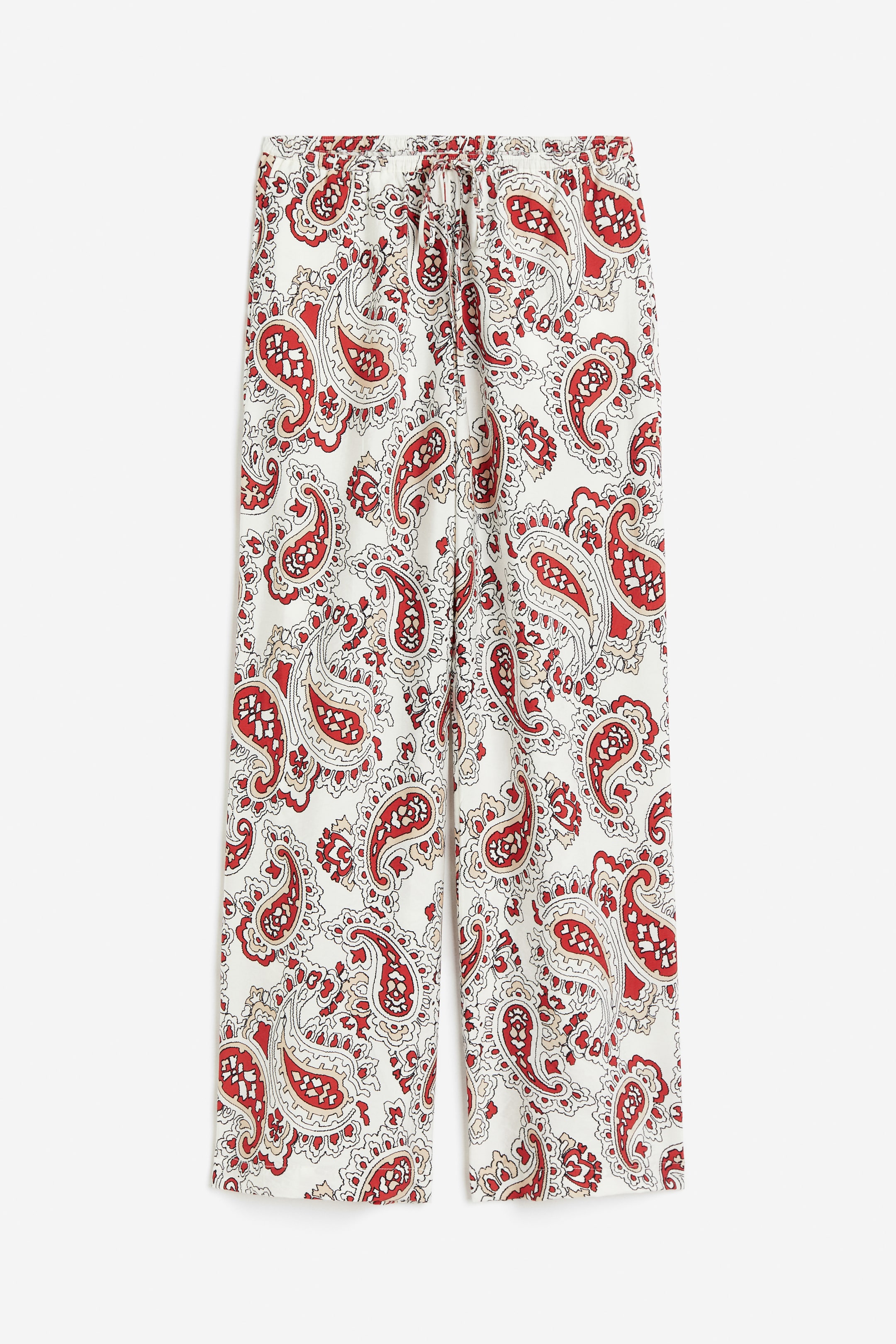 Loose-fit trousers in woven fabric with covered elastication and a drawstring at the waist. Discreet pockets in the side seams and straight legs.
