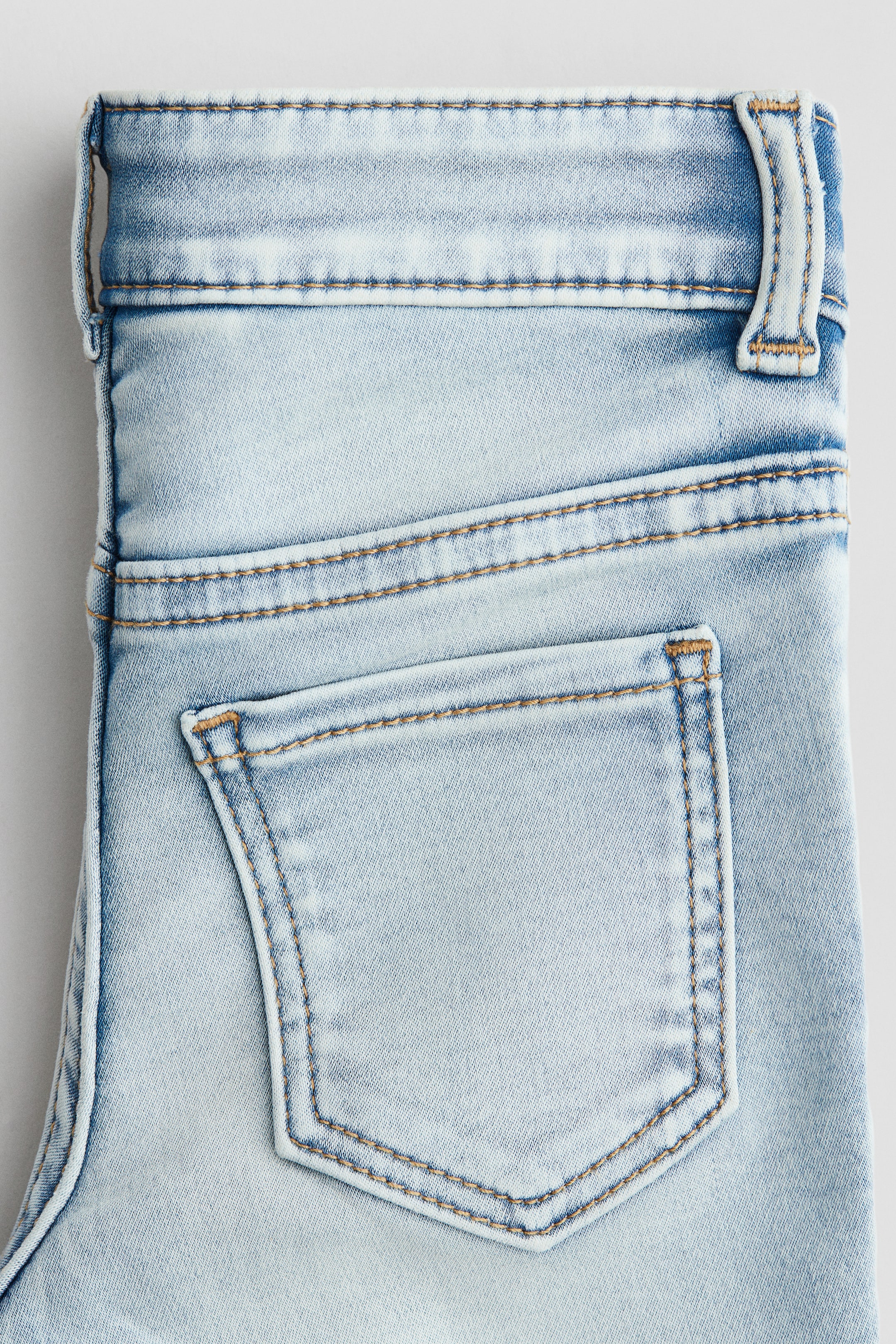 5-pocket jeans in stretchy cotton denim. Slim fit through the hip and thigh with flared legs. Adjustable, elasticated waist and a zip fly with a press-stud.