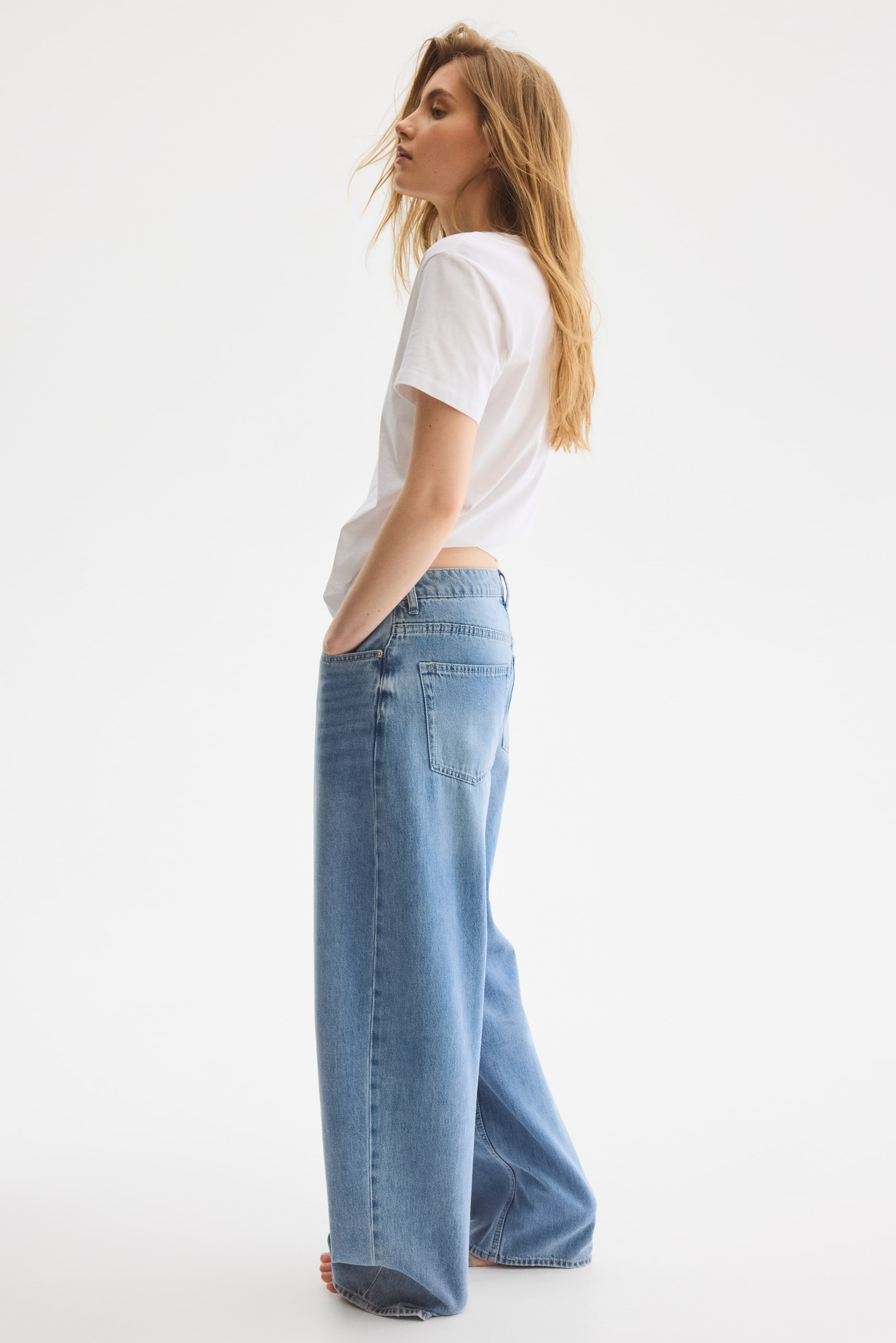 5-pocket jeans in rigid denim that feels firm at first but then softens and loosens with wear. Straight leg with a loose fit from the waist to the hip and a baggy fit from the thigh to the hem. High waist with a zip fly and button. Longer length, designed to fall over the foot with a stacking effect. A design that goes from sleek and chic to sporty and cool.