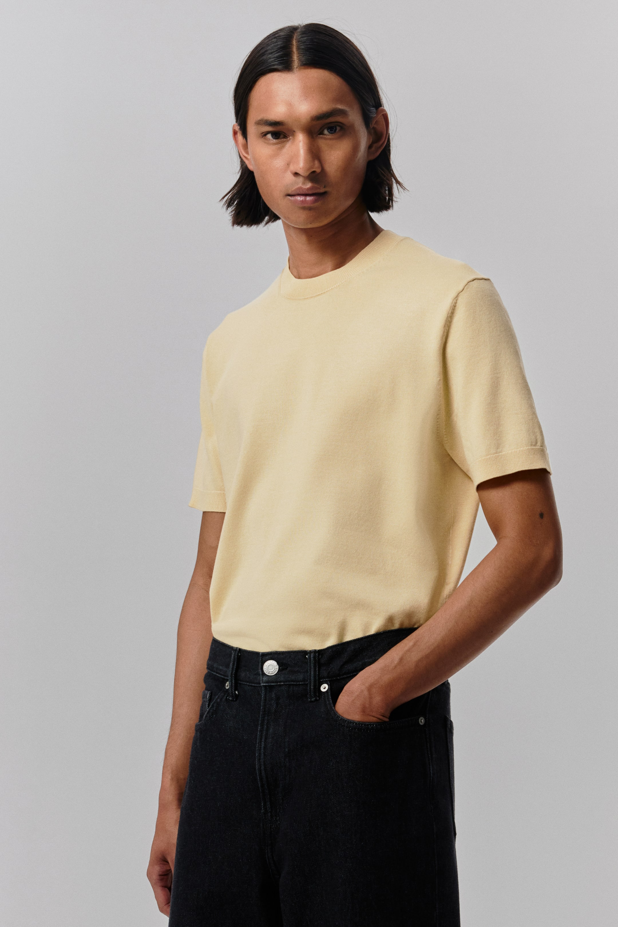 T-shirt in a soft, fine knit with ribbing around the neckline and at the cuffs and hem. Slim fit that hugs the contours of your body, creating a fitted silhouette.
