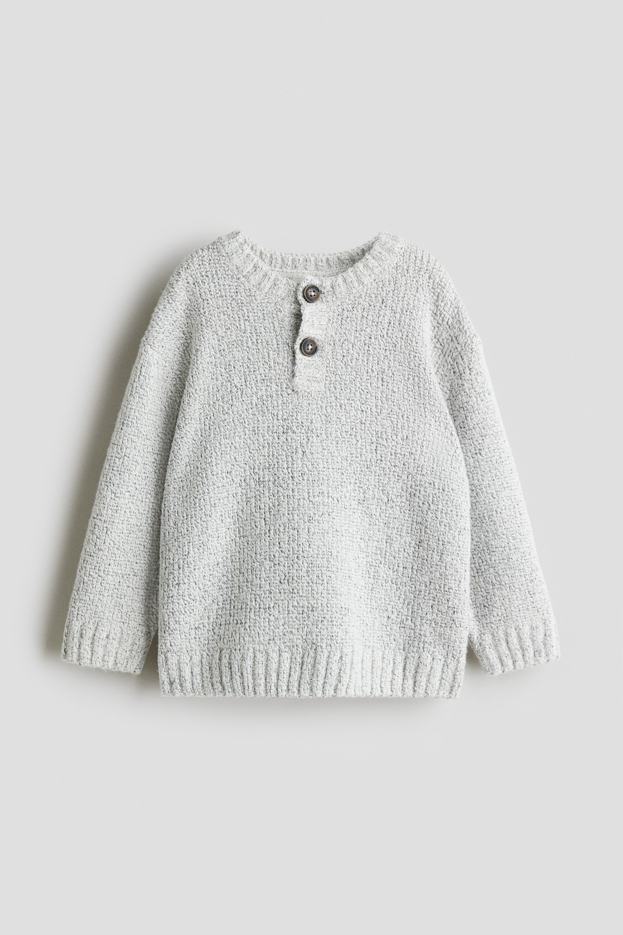 Jumper in a soft knit with a round, rib-trimmed neckline, button placket, gently dropped shoulders and long sleeves. Ribbing at the cuffs and hem.