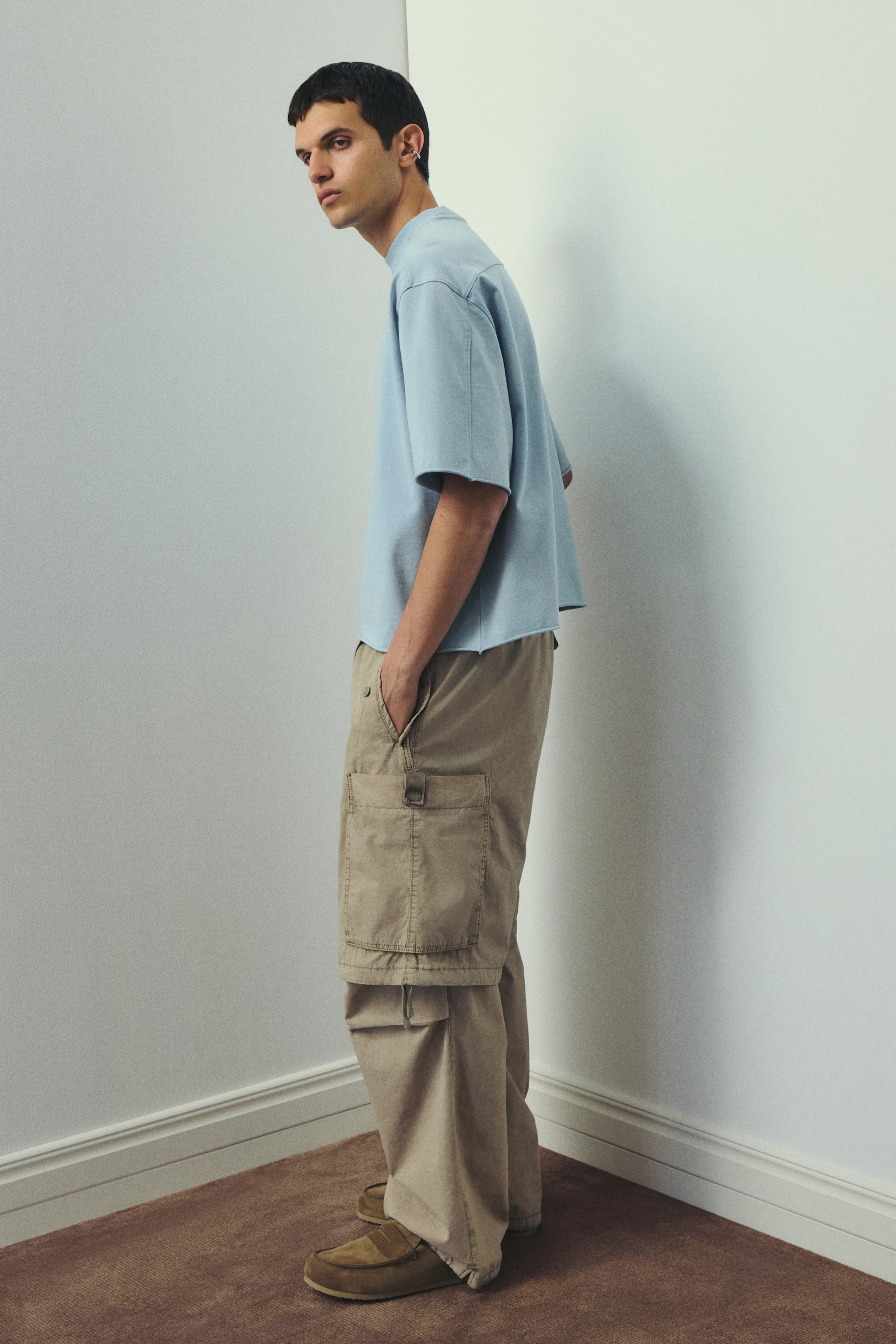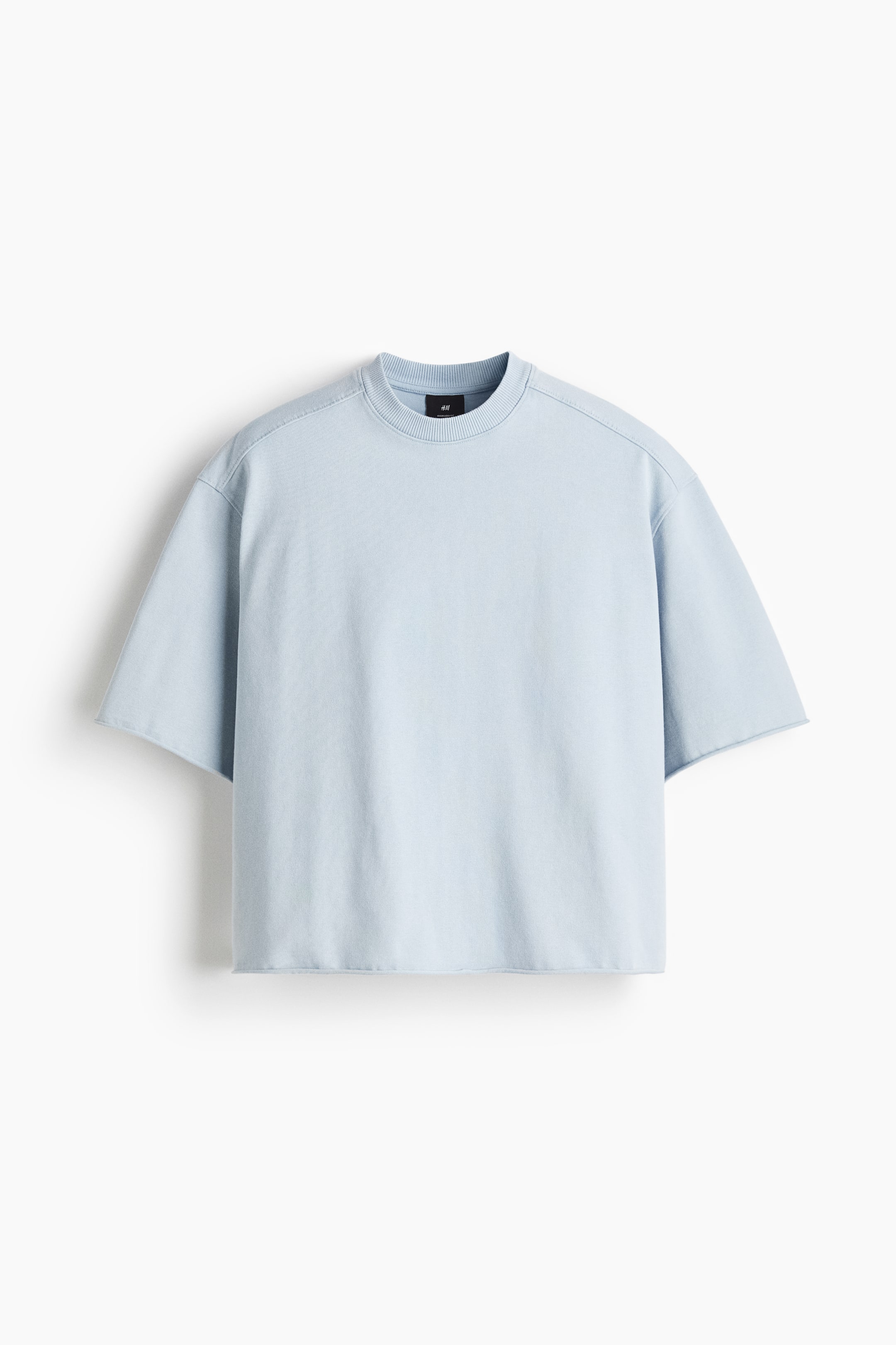 Boxy-style T-shirt in heavyweight cotton jersey with a round, rib-trimmed neckline, a yoke at the back, dropped shoulders and a rolled, raw-edge hem. Oversized fit for a baggy, extra-loose silhouette.